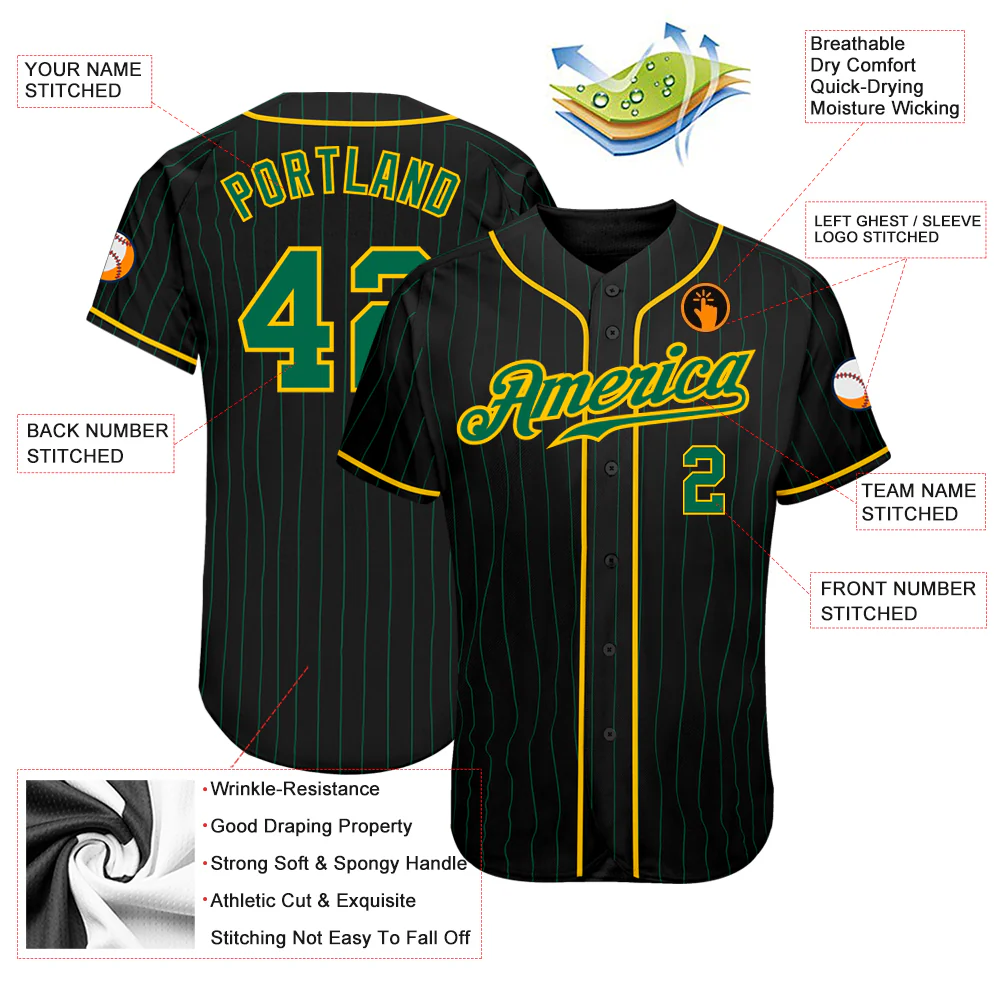 Custom Black Kelly Green Pinstripe Kelly Green-Gold Authentic Baseball Jersey