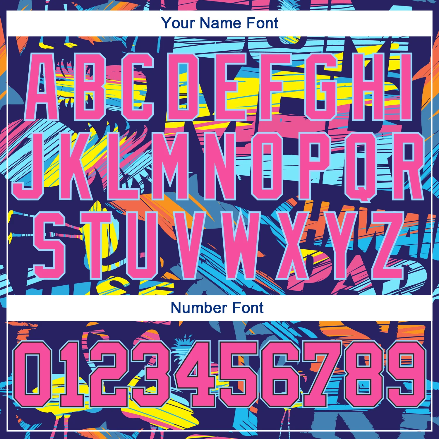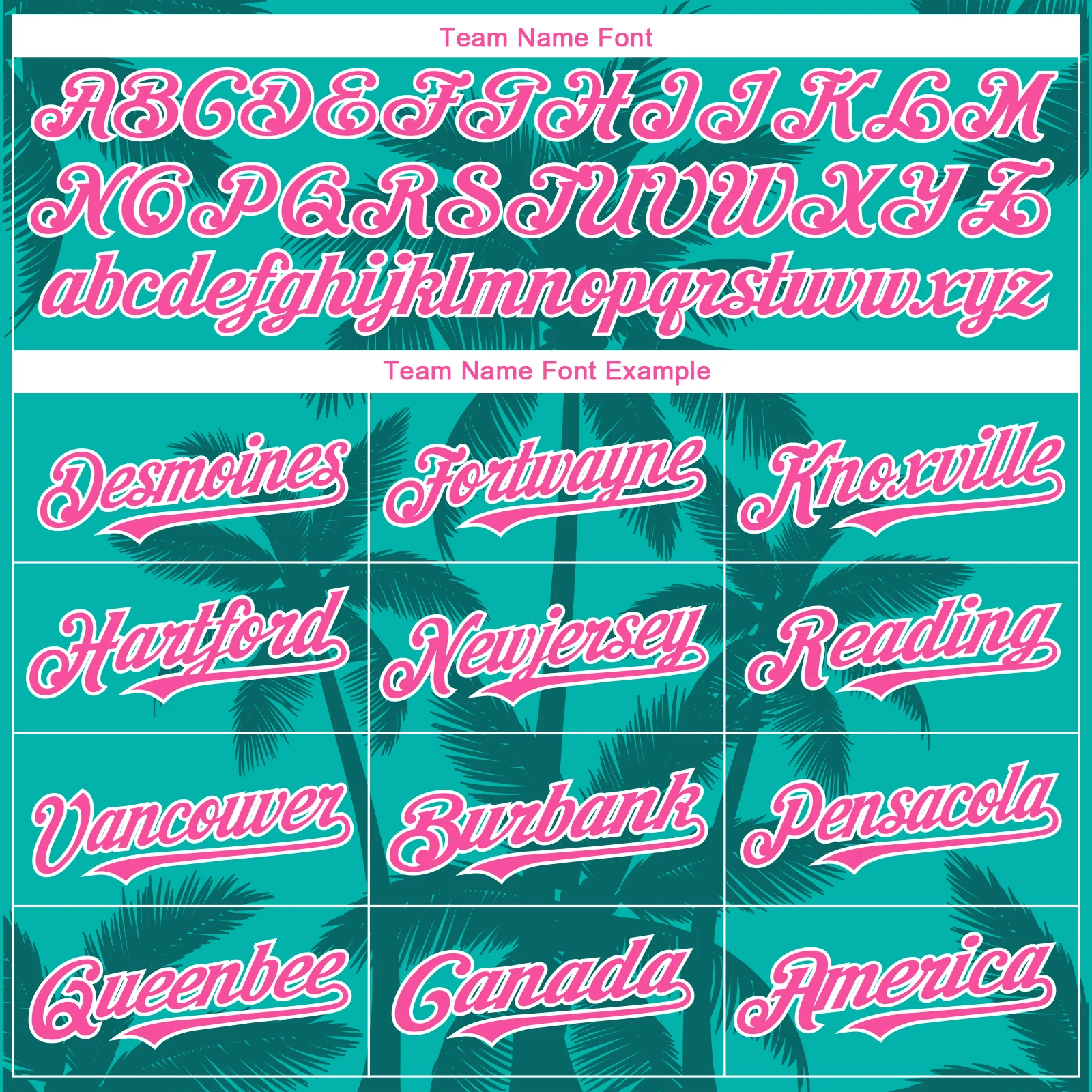 Custom Aqua Pink Teal-White Tropical Hawaii Palm Trees Authentic Baseball Jersey