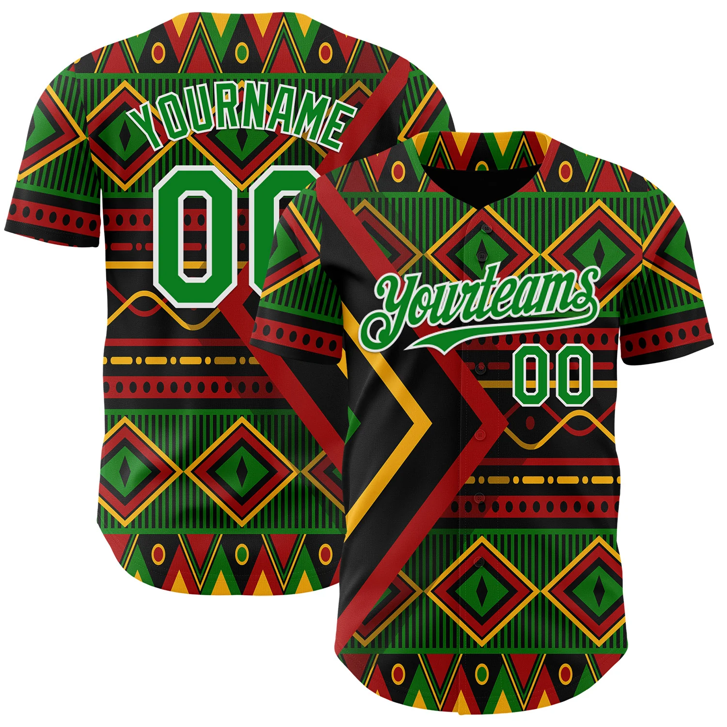 Custom Black Grass Green Red Yellow-White 3D Pattern Design Black History Month African Ethnicity Style Abstract Geometric Authentic Baseball Jersey