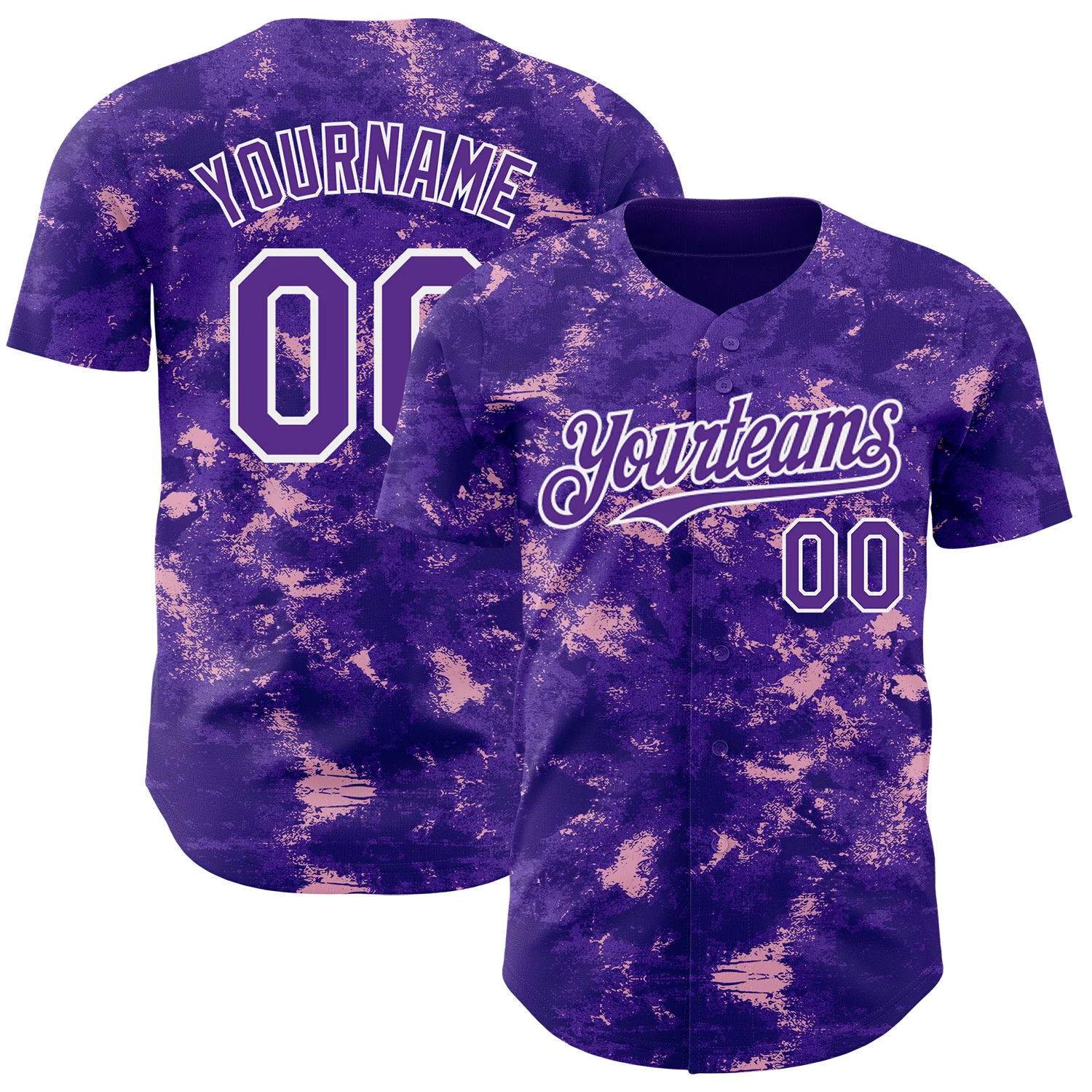 Custom Tie Dye Purple-White 3D Authentic Baseball Jersey