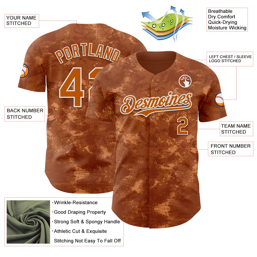 Custom Tie Dye Texas Orange-White 3D Authentic Baseball Jersey