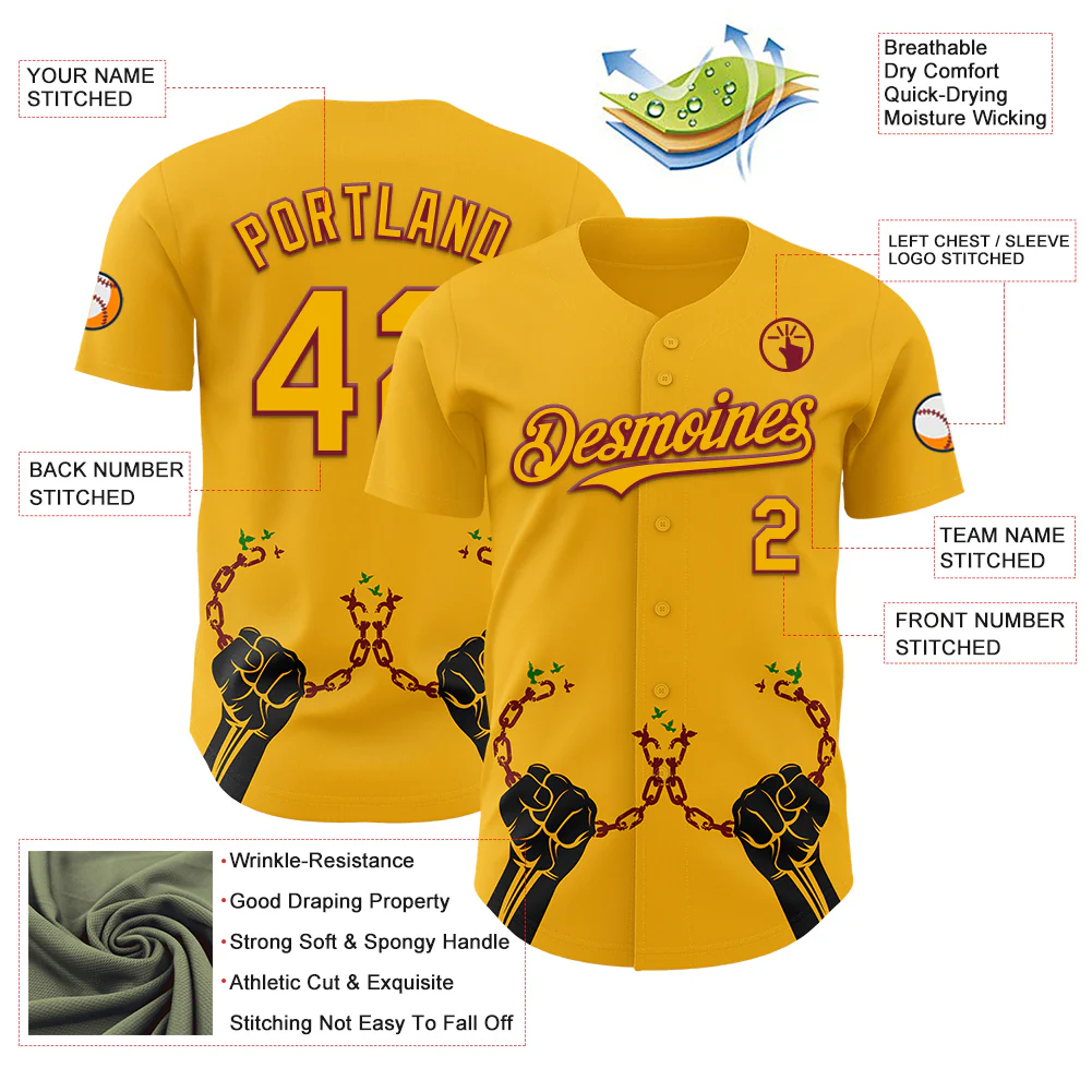 Custom Gold Crimson-Black 3D Pattern Design Black History Month Authentic Baseball Jersey