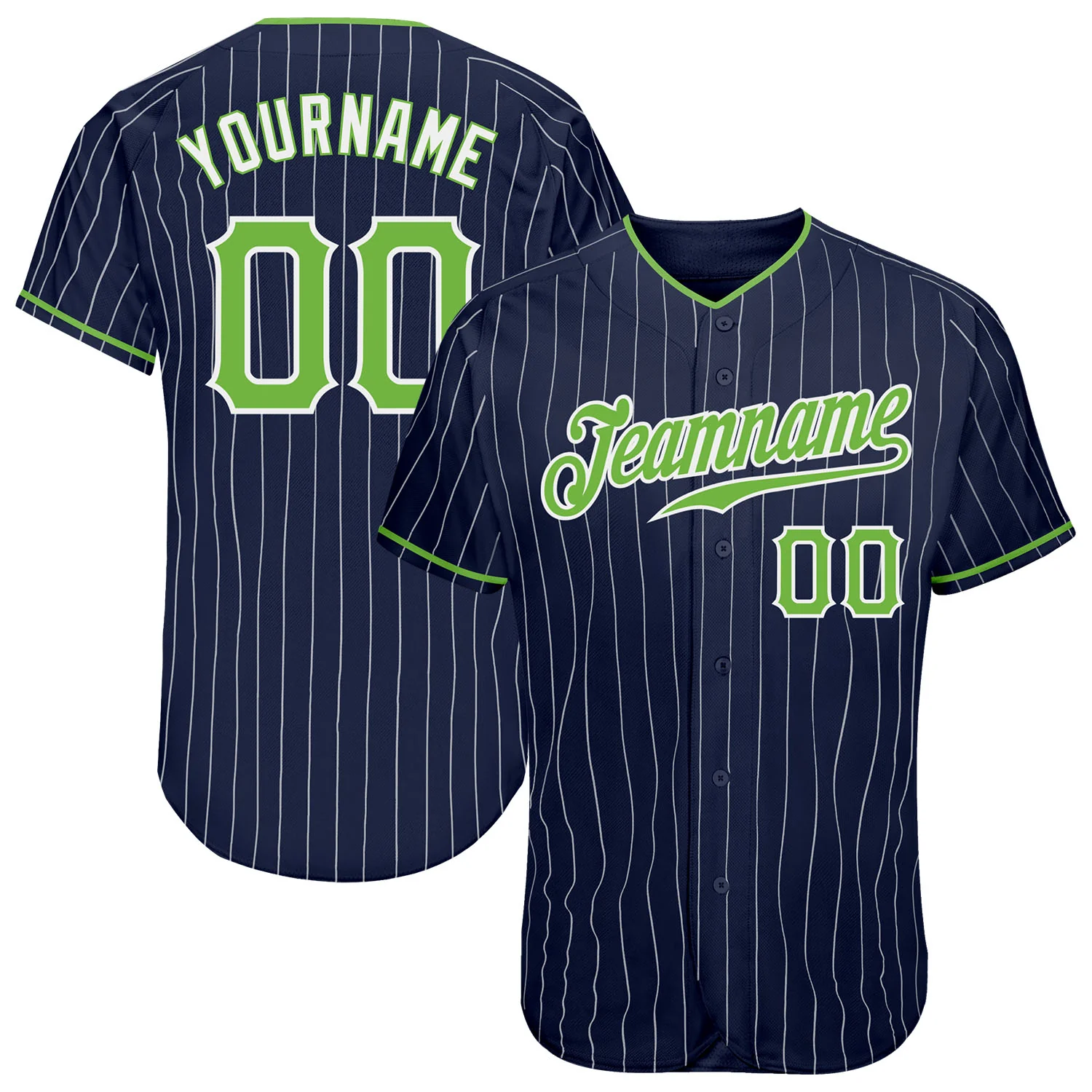 Custom Navy White Pinstripe Neon Green-White Authentic Baseball Jersey