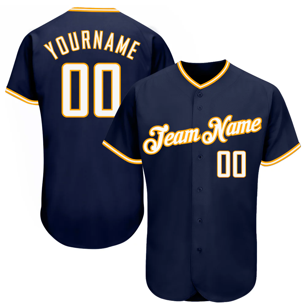 Custom Navy White-Gold Authentic Baseball Jersey
