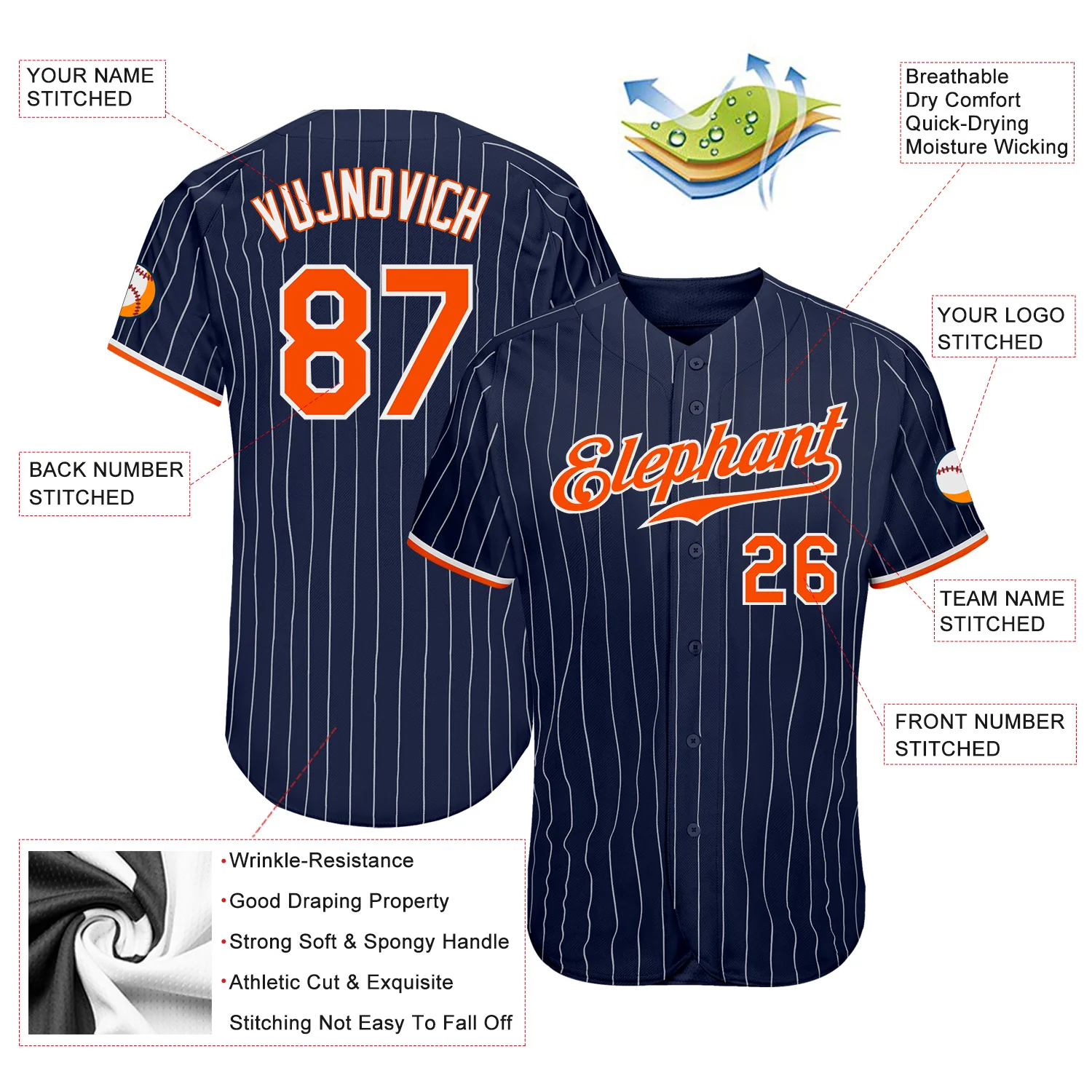 Custom Navy White Pinstripe Orange-White Authentic Baseball Jersey