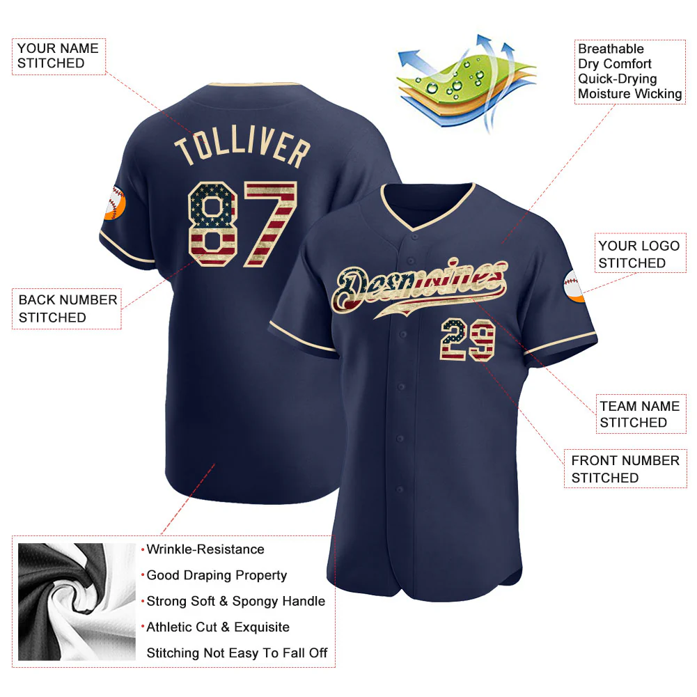 Custom Navy Vintage USA Flag-Cream Authentic Baseball Jersey