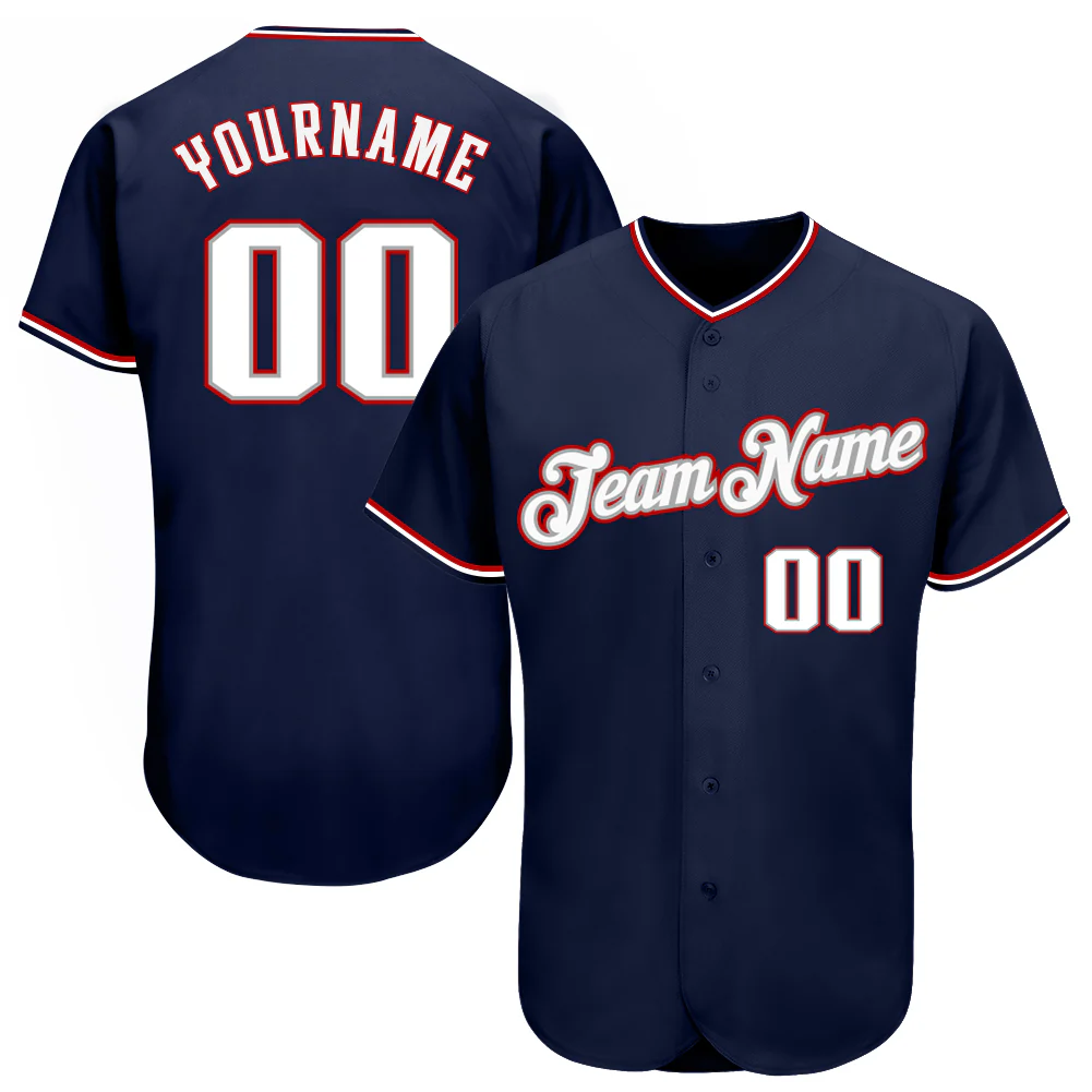 Custom Navy White-Red Authentic Baseball Jersey