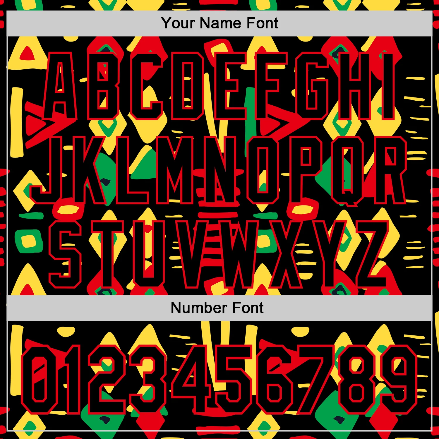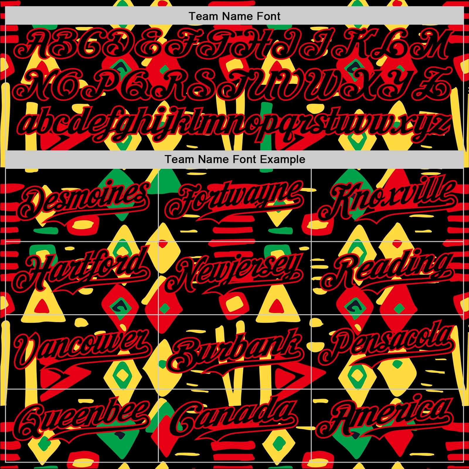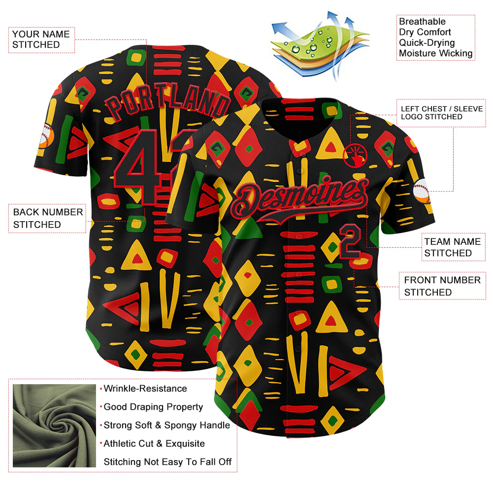 Custom Black Red Yellow-Green 3D Pattern Design Black History Month African Ethnicity Style Abstract Geometric Authentic Baseball Jersey