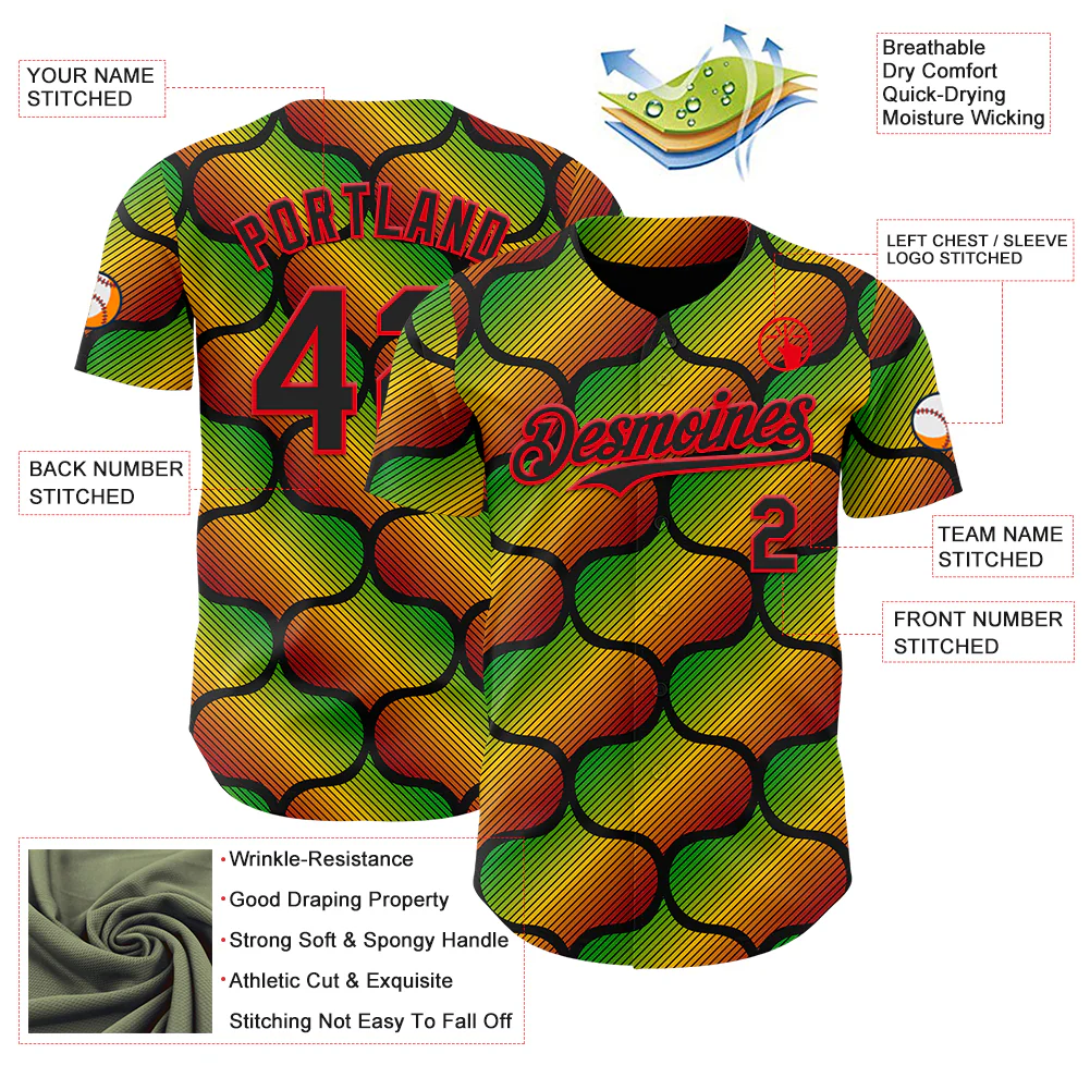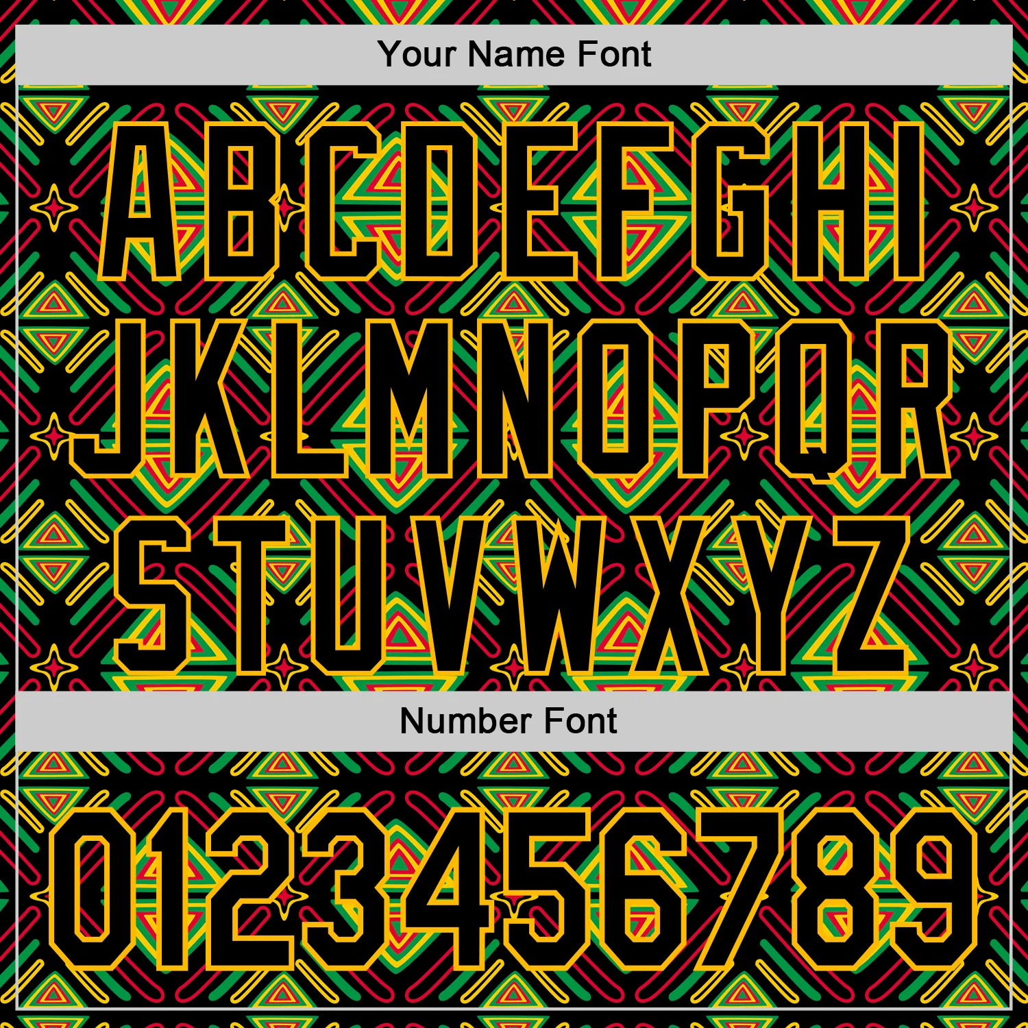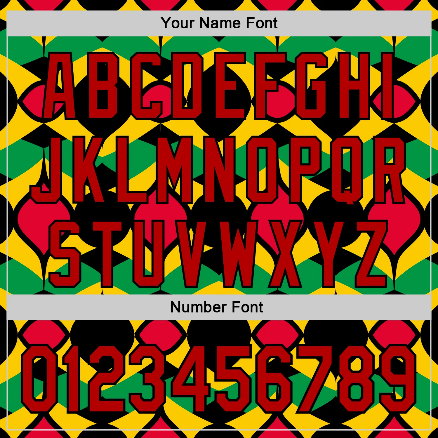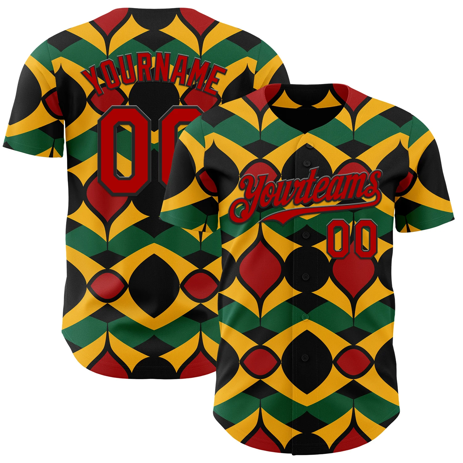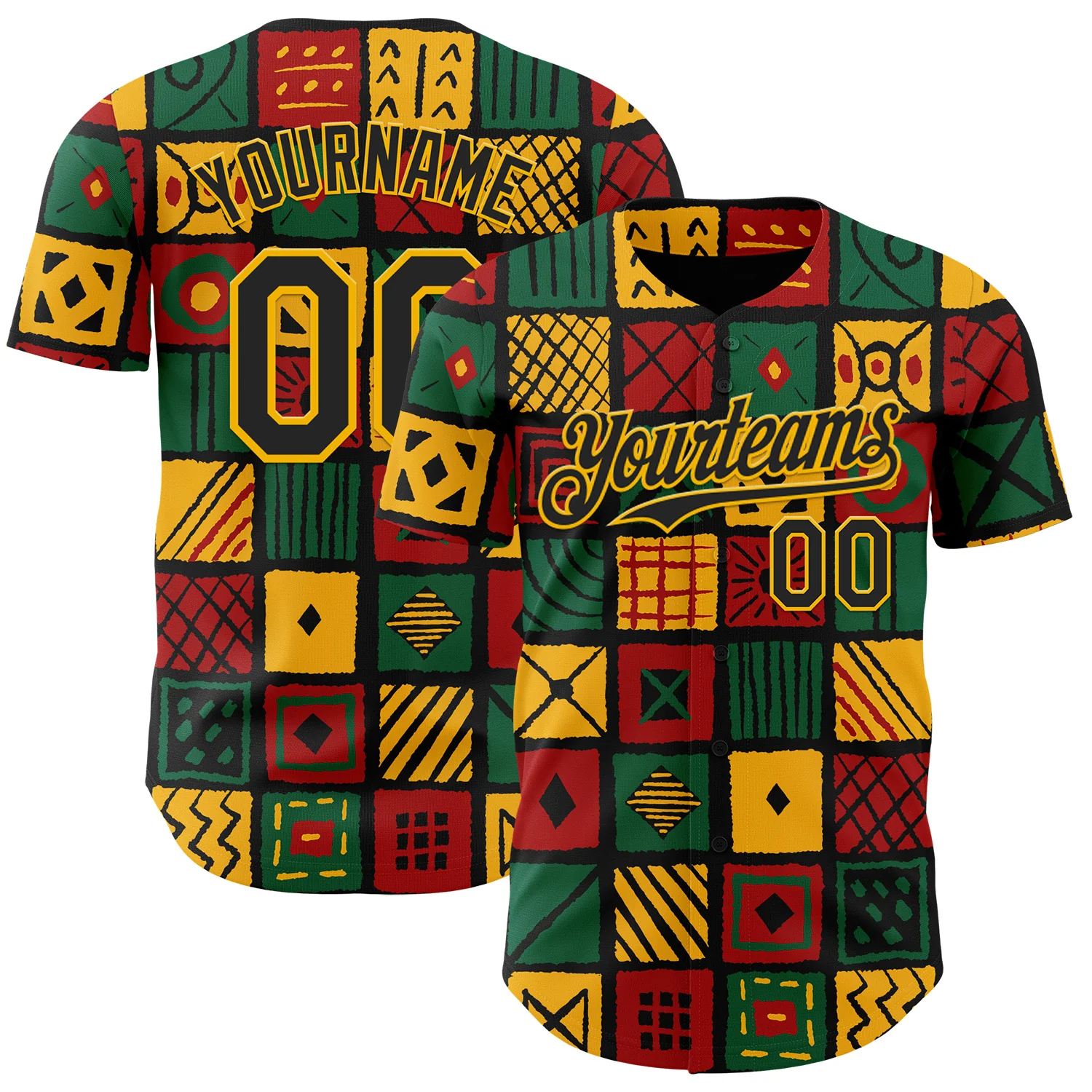 Custom Black Grass Green Red Light Yellow-Gold 3D Pattern Design Black History Month African Ethnicity Style Abstract Geometric Authentic Baseball Jersey