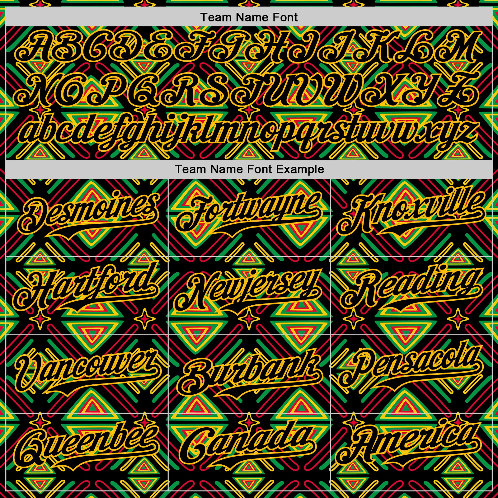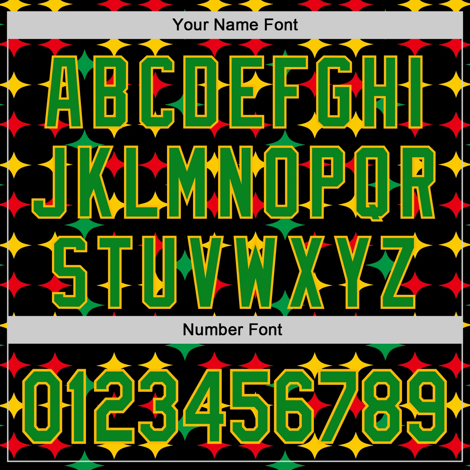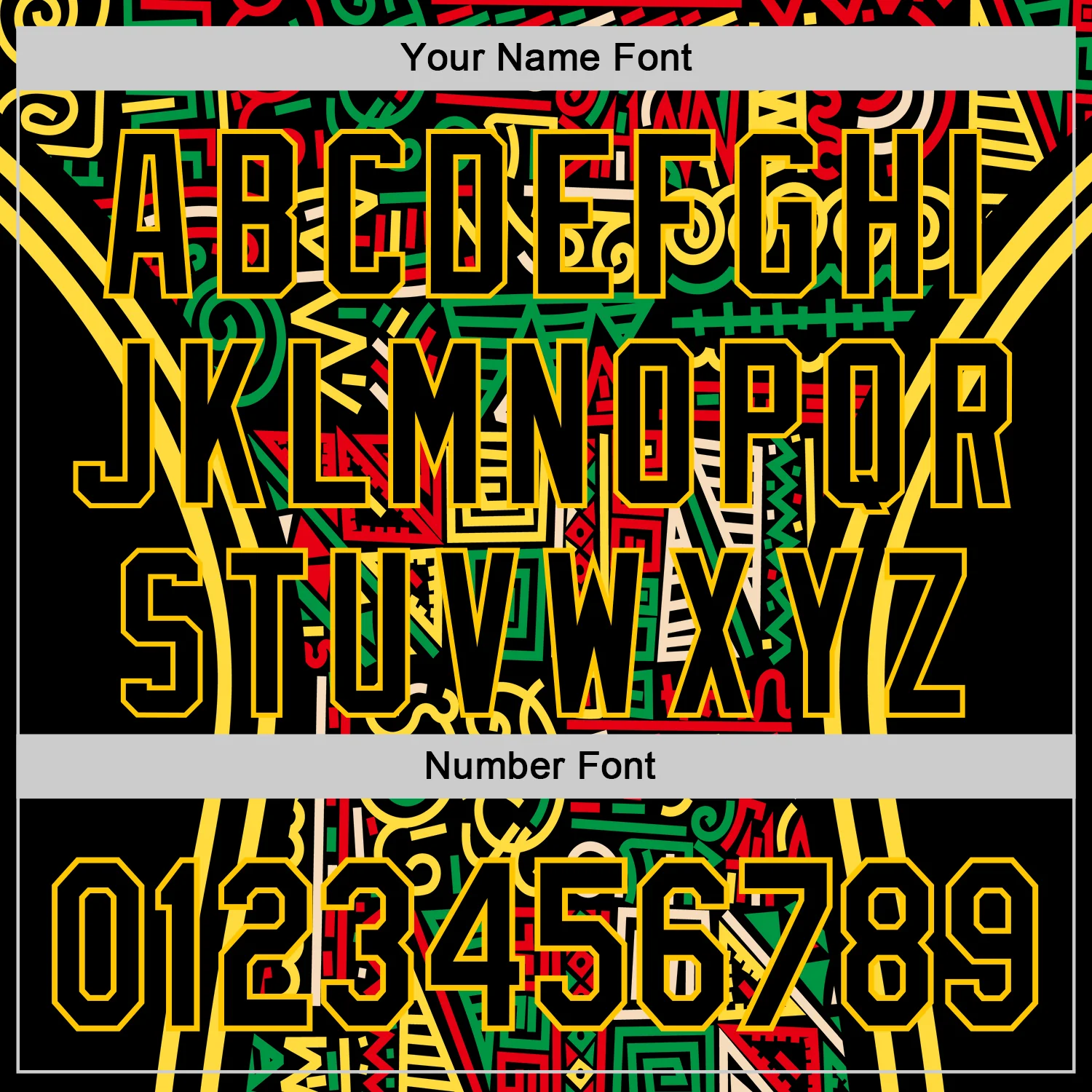 Custom Black Gold Green-Red 3D Pattern Design Black History Month African Ethnicity Style Abstract Geometric Authentic Baseball Jersey