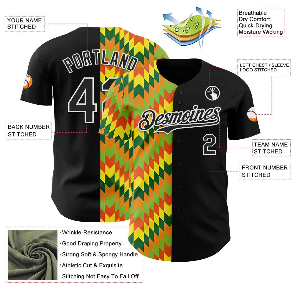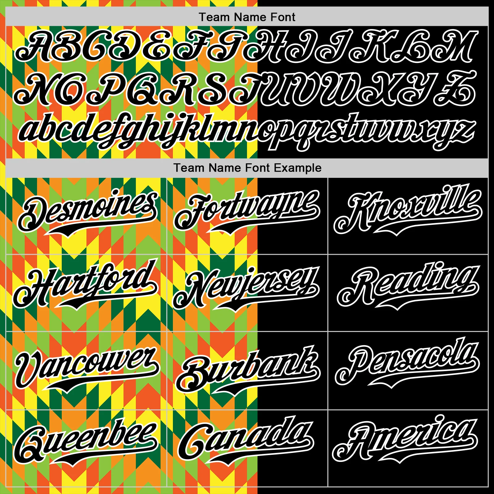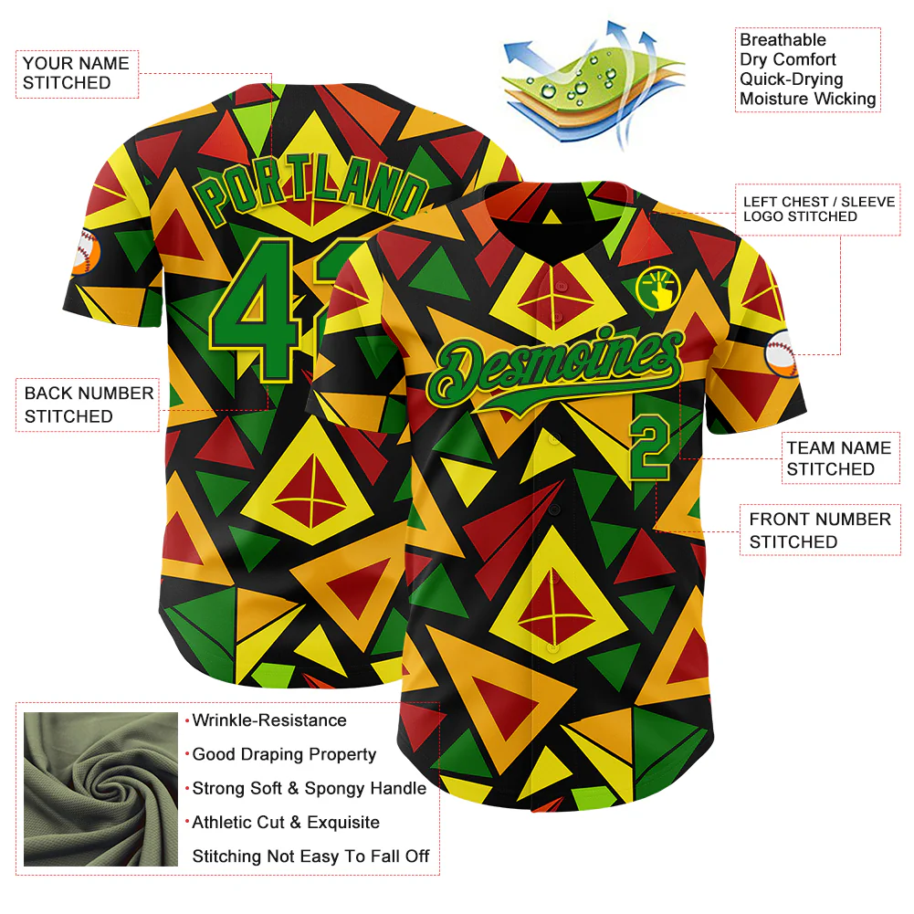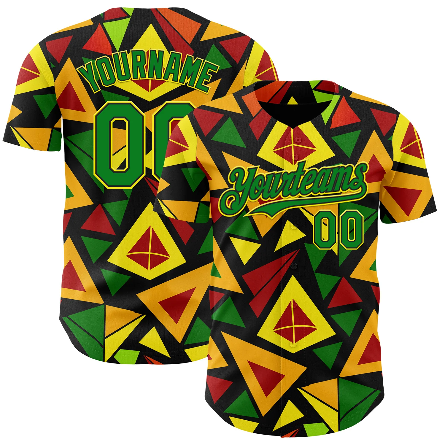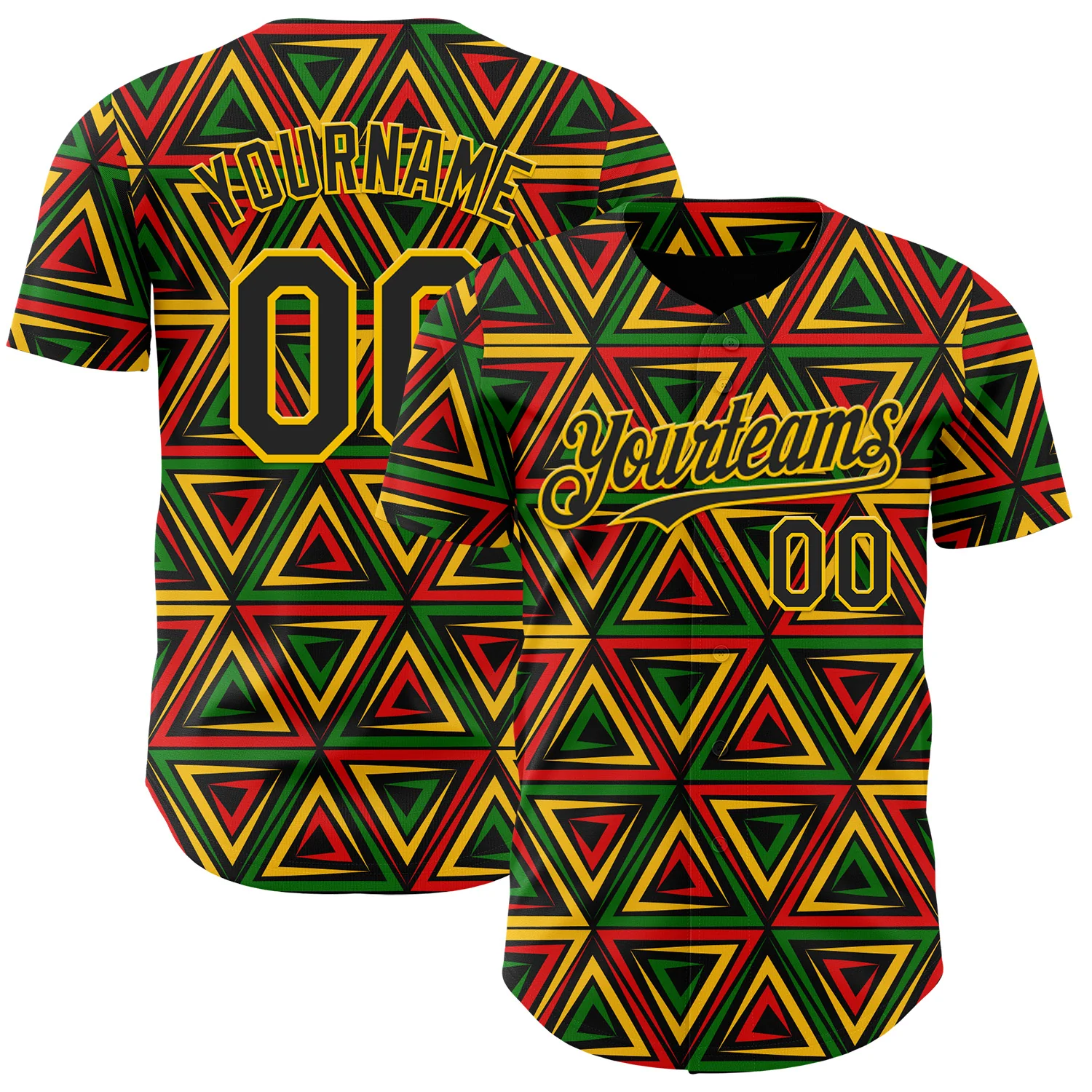 Custom Black Yellow Green Red-Orange 3D Pattern Design Black History Month African Ethnicity Style Abstract Geometric Authentic Baseball Jersey