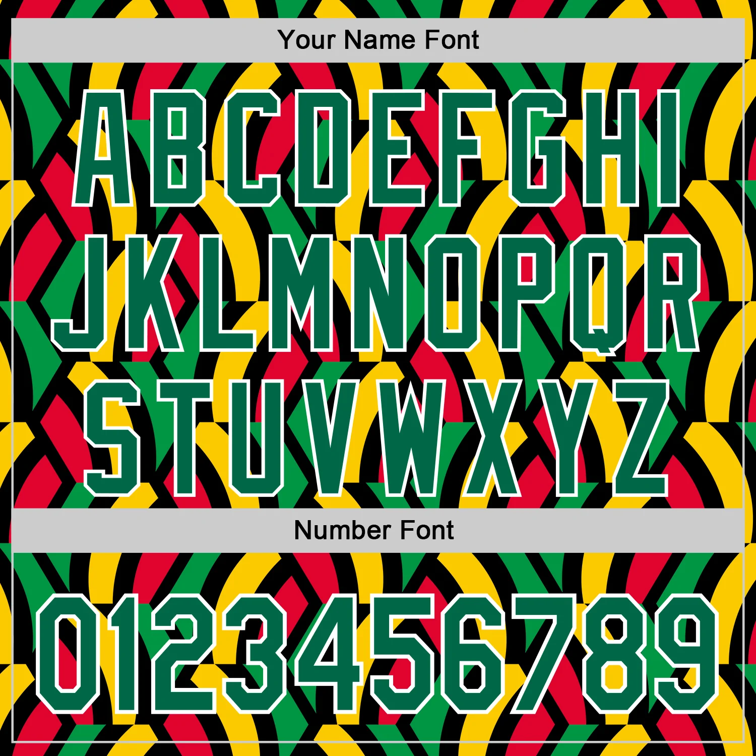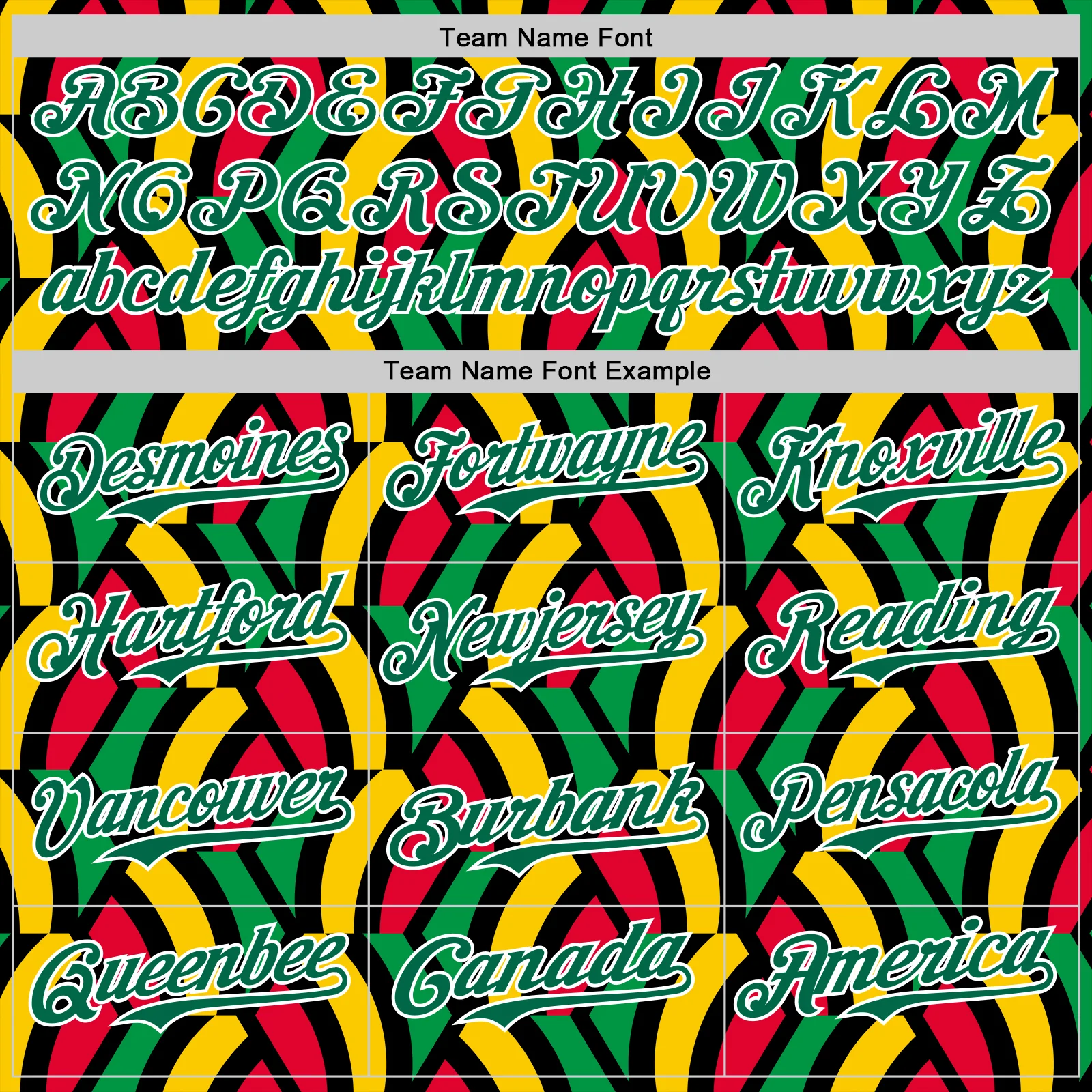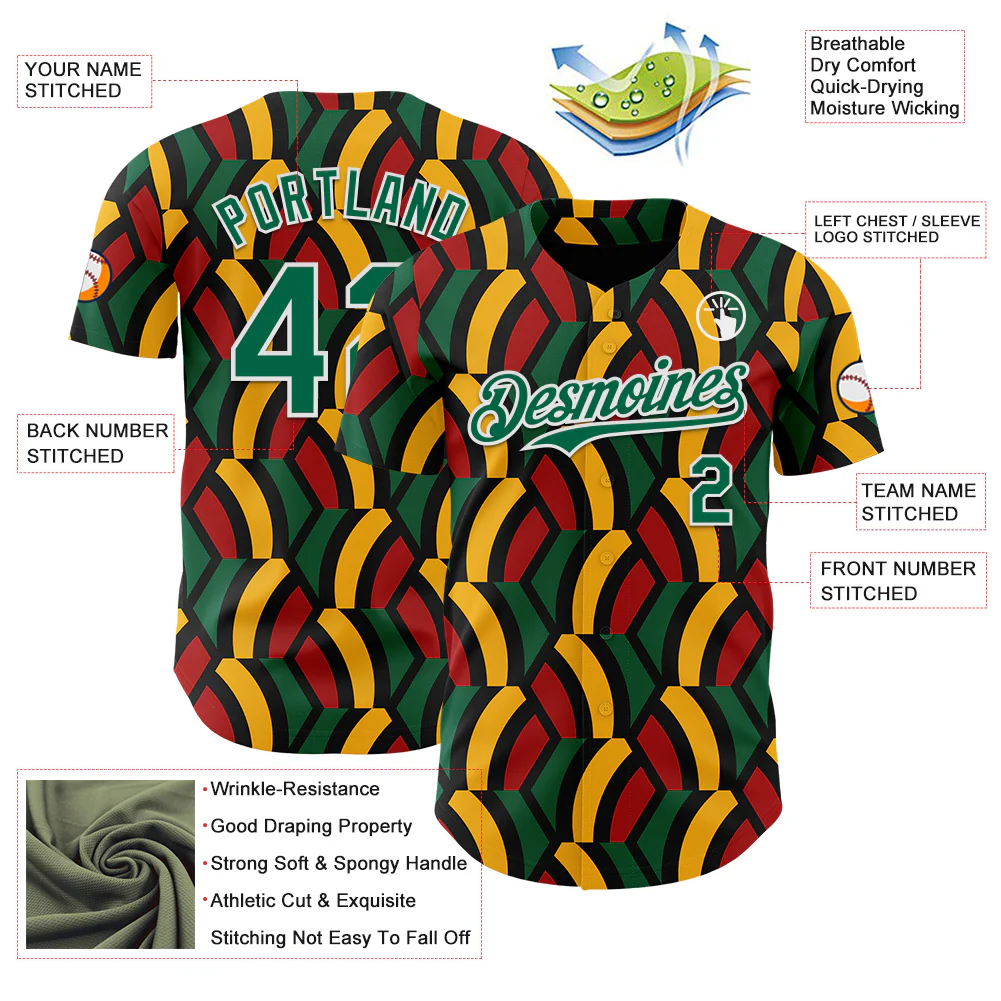 Custom Black Kelly Green Red Yellow-White 3D Pattern Design Black History Month African Ethnicity Style Abstract Geometric Authentic Baseball Jersey