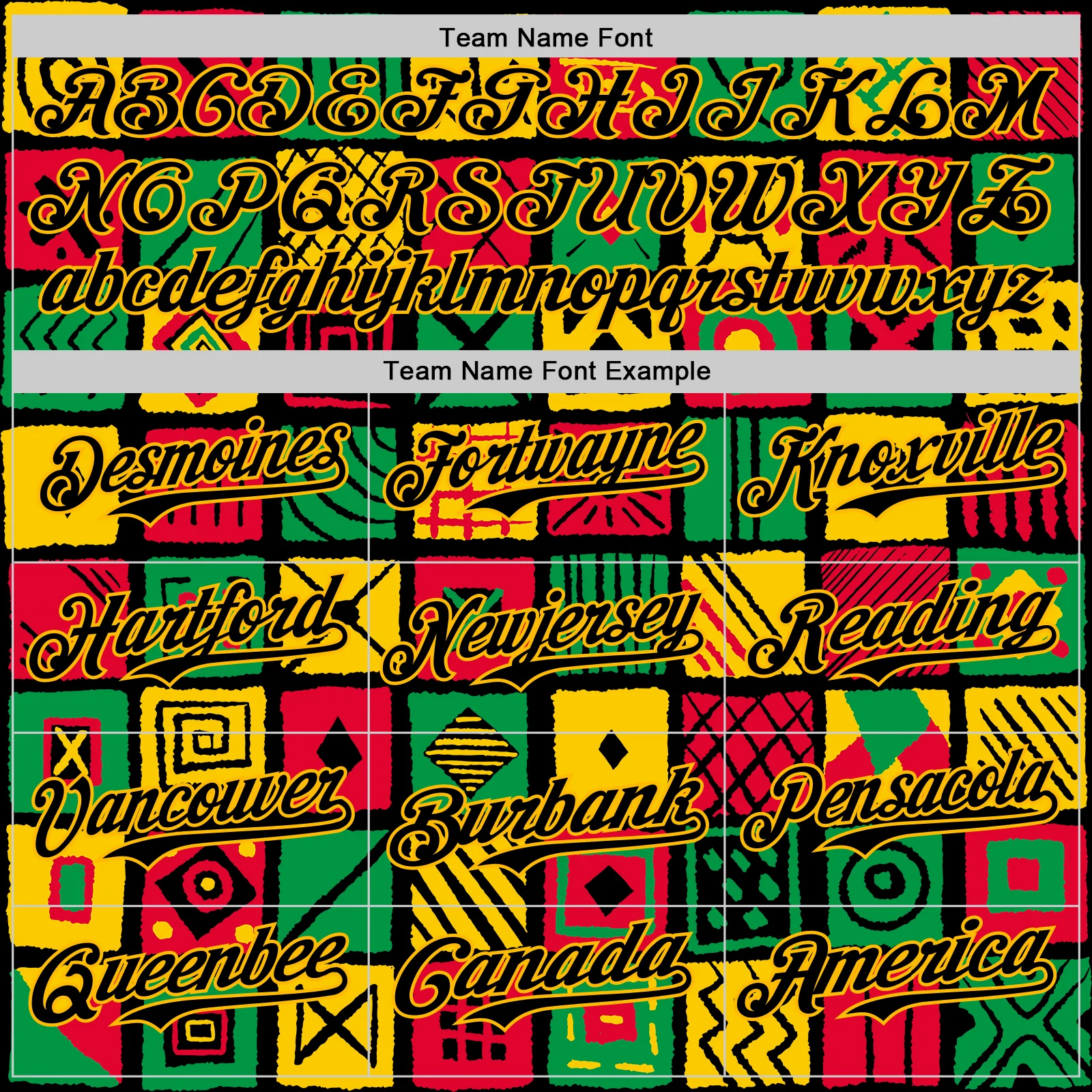 Custom Black Yellow Green-Red 3D Pattern Design Black History Month African Ethnicity Style Abstract Geometric Authentic Baseball Jersey