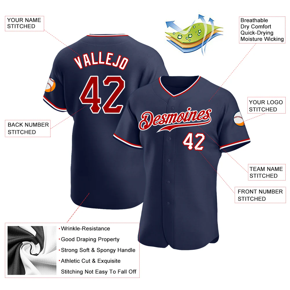 Custom Navy Red-White Authentic American Flag Fashion Baseball Jersey