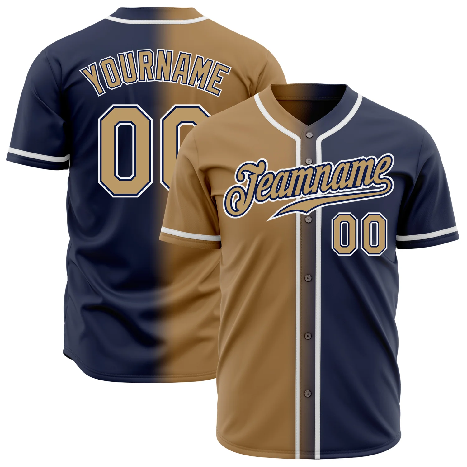 Custom Navy Old Gold-White Authentic Gradient Fashion Baseball Jersey