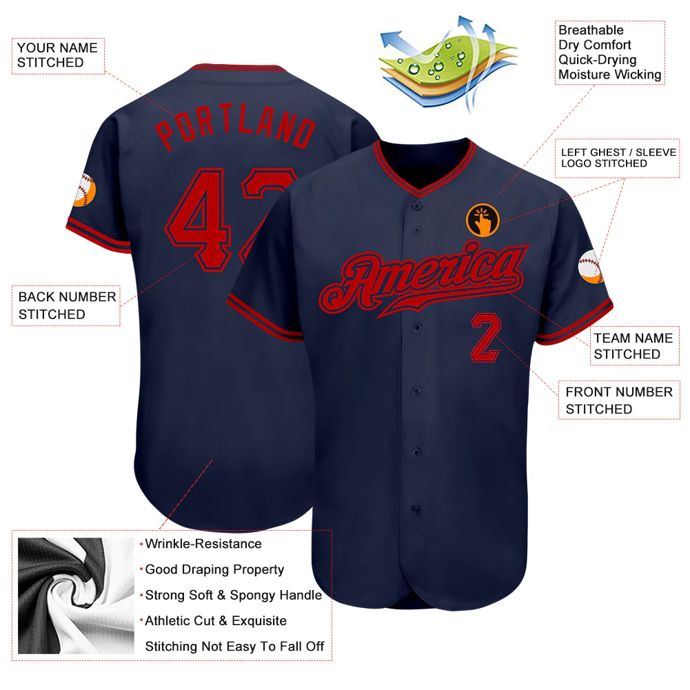 Custom Navy Red Authentic Baseball Jersey