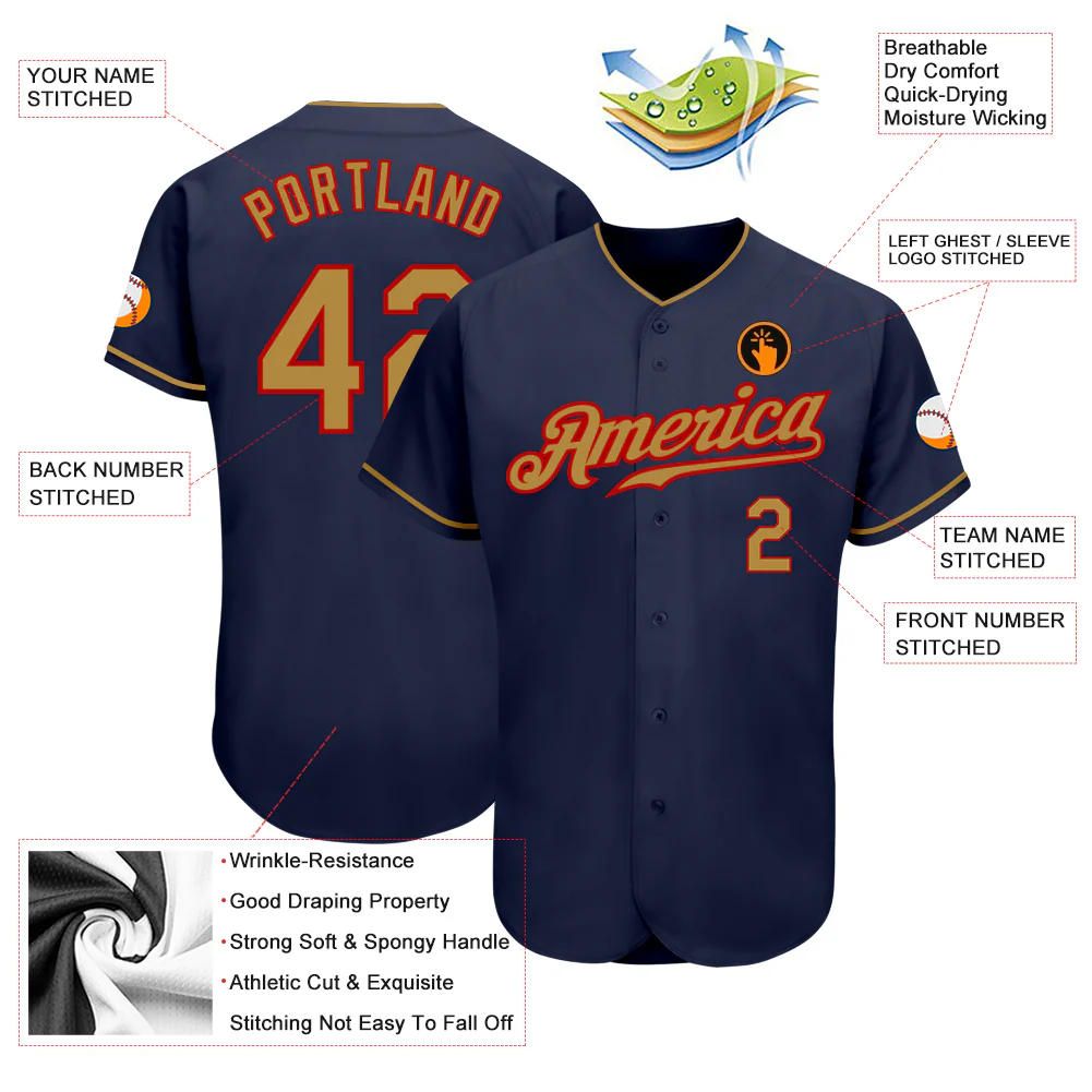 Custom Navy Red-Gold Authentic Baseball Jersey