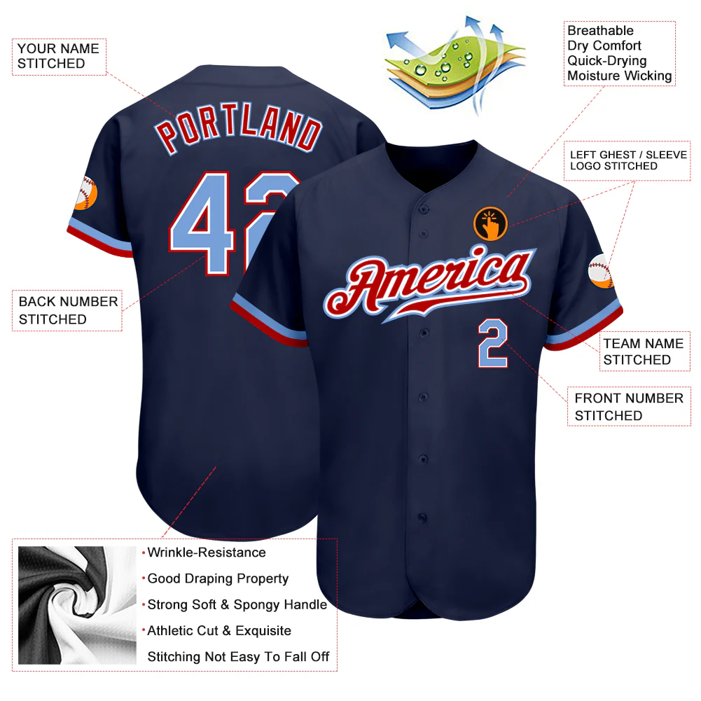 Custom Navy Light Blue-Red Authentic Baseball Jersey