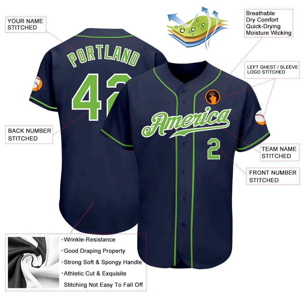 Custom Navy Neon Green-White Authentic Baseball Jersey