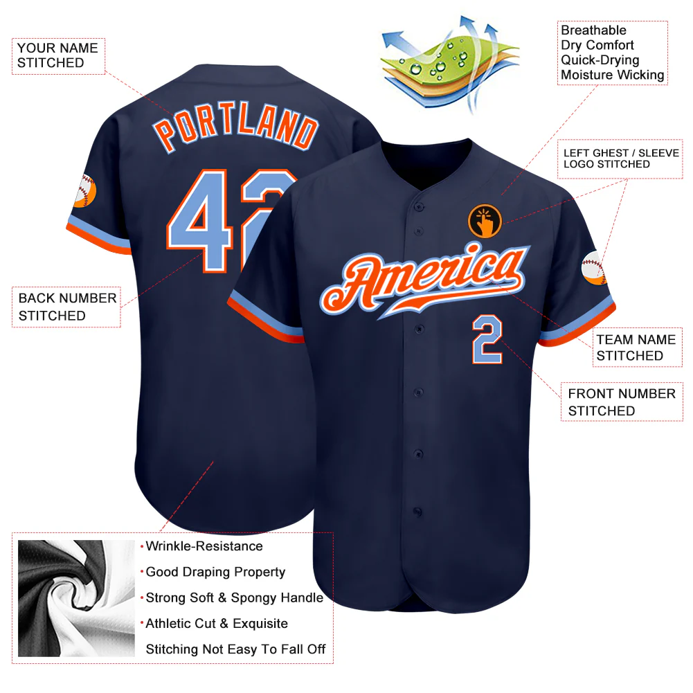 Custom Navy Powder Blue-Orange Authentic Baseball Jersey