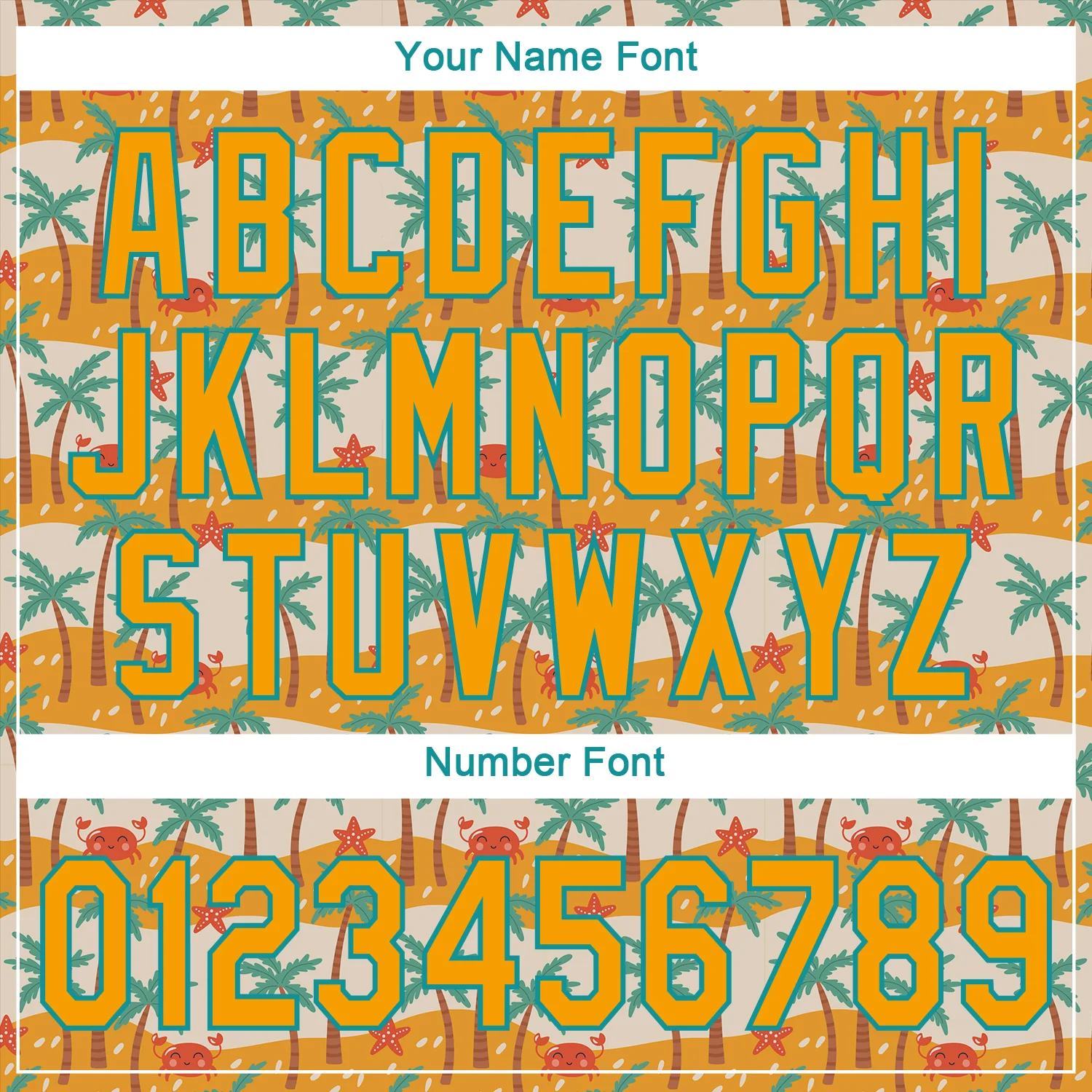 Custom White Gold-Teal 3D Pattern Design Hawaii Palm Trees Authentic Baseball Jersey