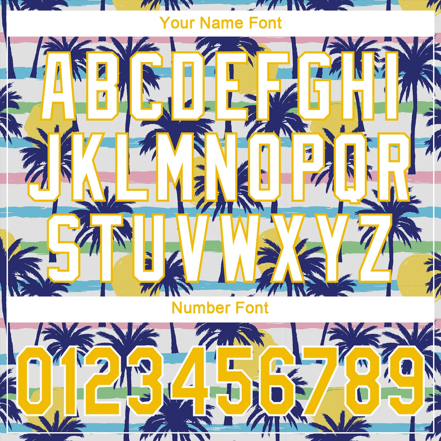 Custom White Gold-White 3D Pattern Design Hawaii Palm Trees Authentic Baseball Jersey