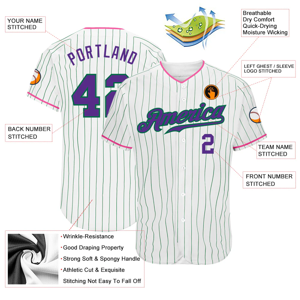 Custom White Kelly Green Pinstripe Purple-Pink Authentic Baseball Jersey