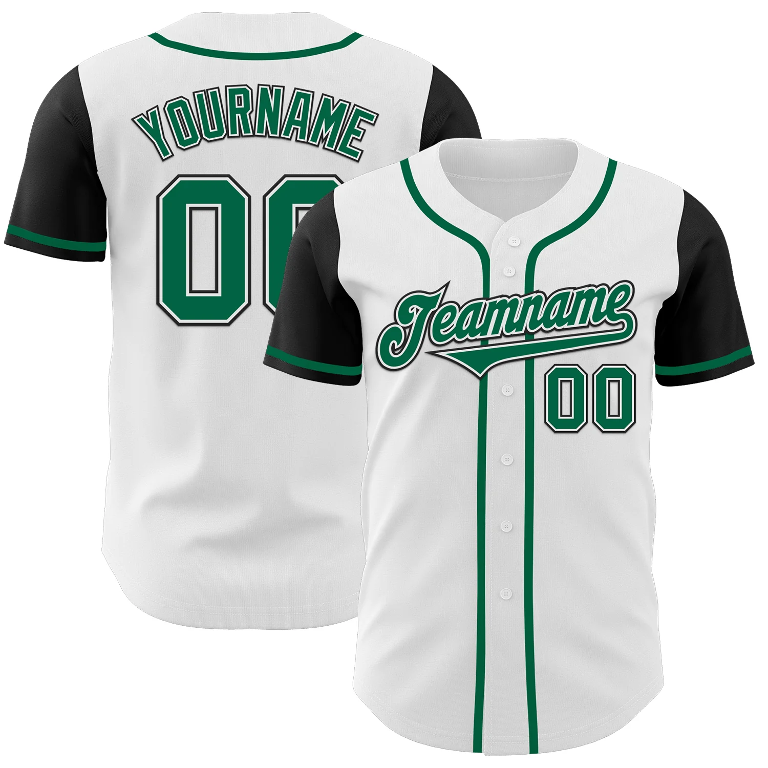 Custom White Kelly Green-Black Authentic Two Tone Baseball Jersey