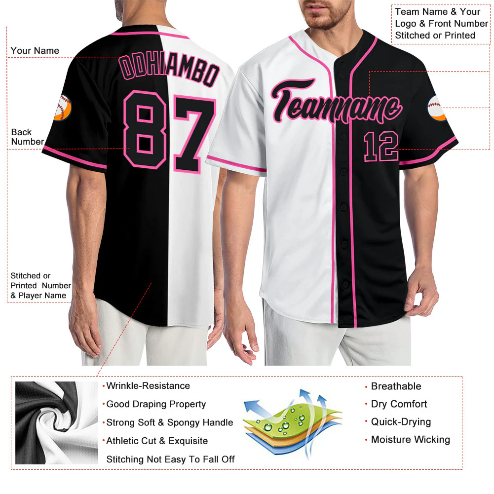 Custom White Black-Pink Authentic Split Fashion Baseball Jersey