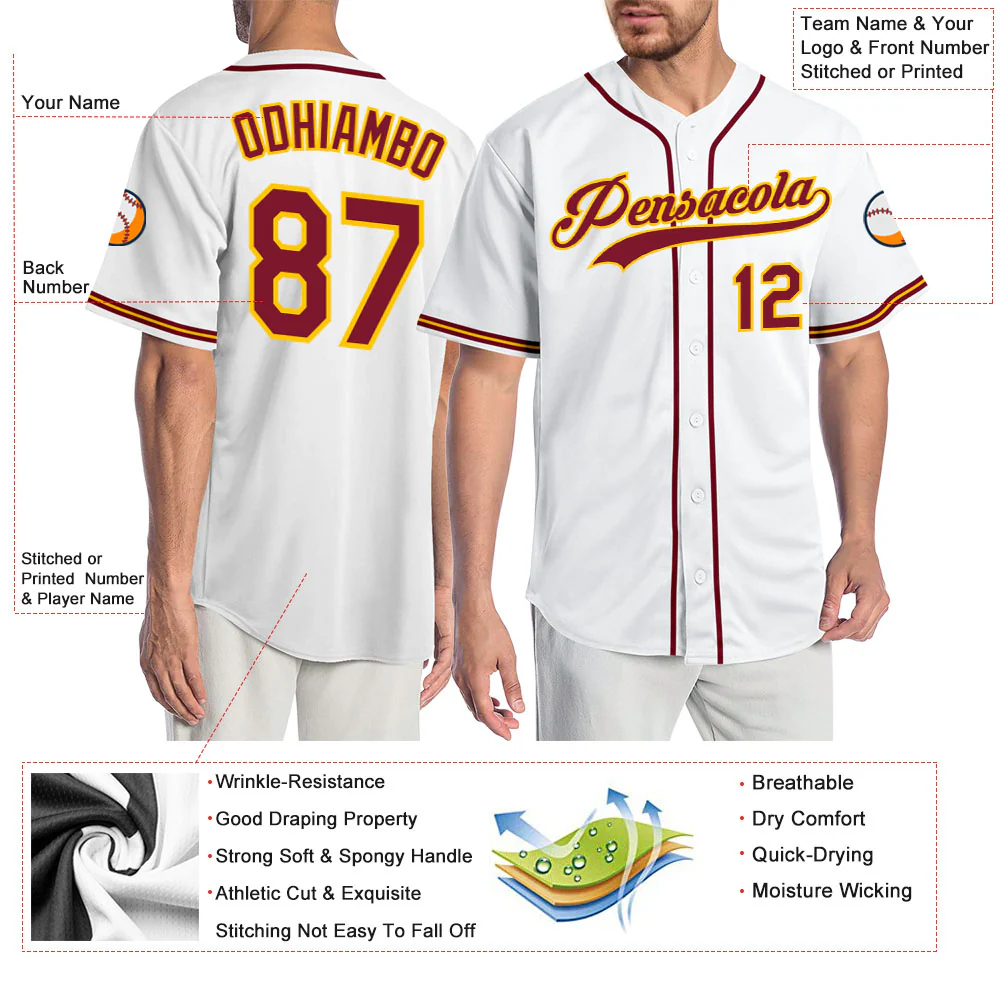 Custom White Crimson-Gold Authentic Baseball Jersey