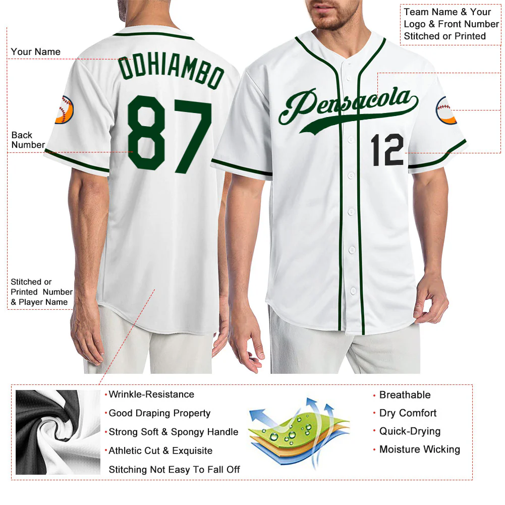 Custom White Green-Black Authentic Baseball Jersey