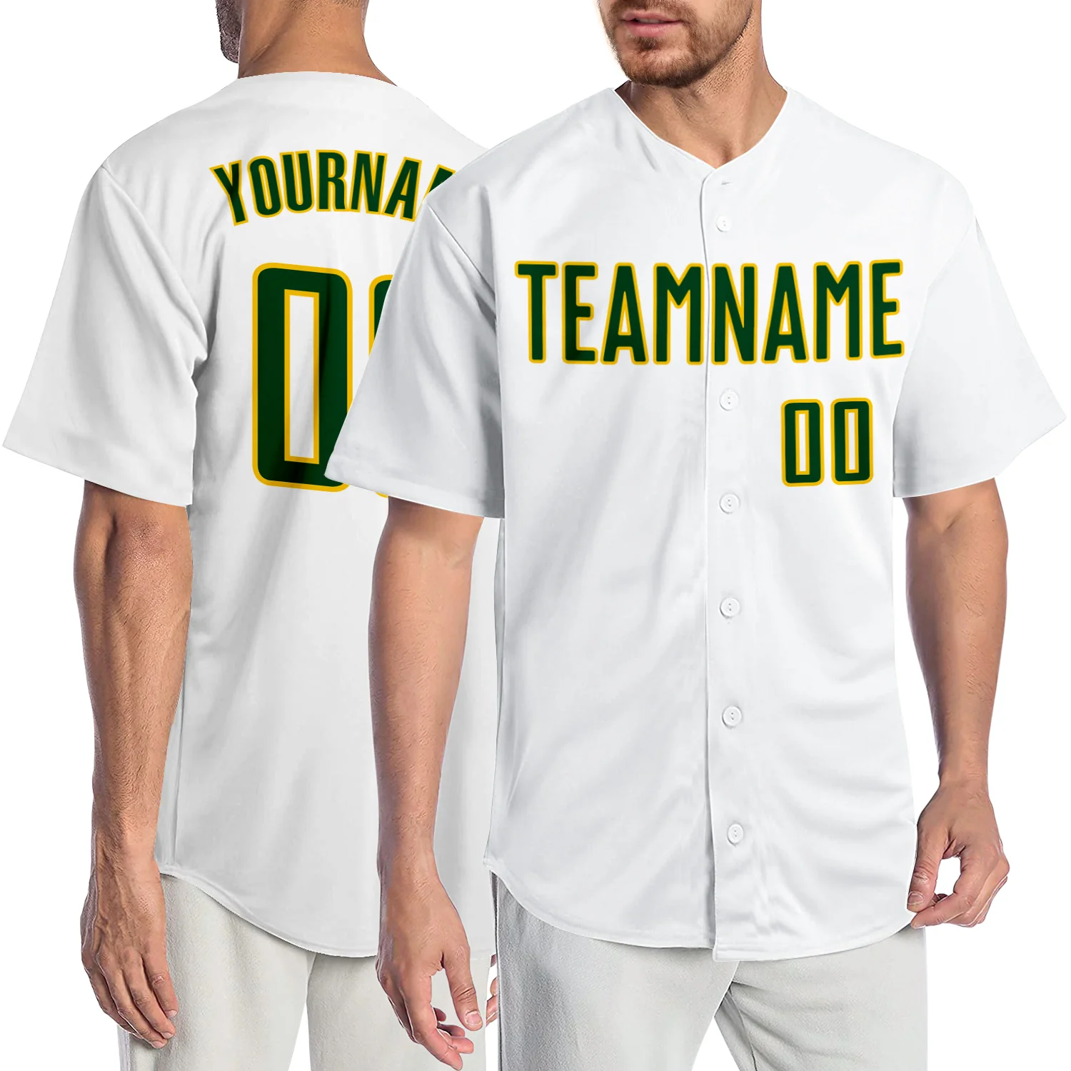 Custom White Green-Gold Authentic Baseball Jersey