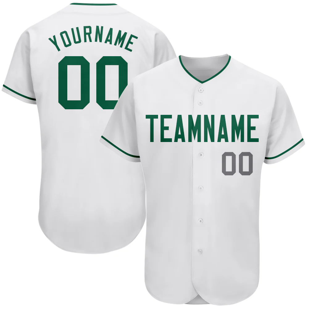 Custom White Kelly Green-Gray Authentic Baseball Jersey