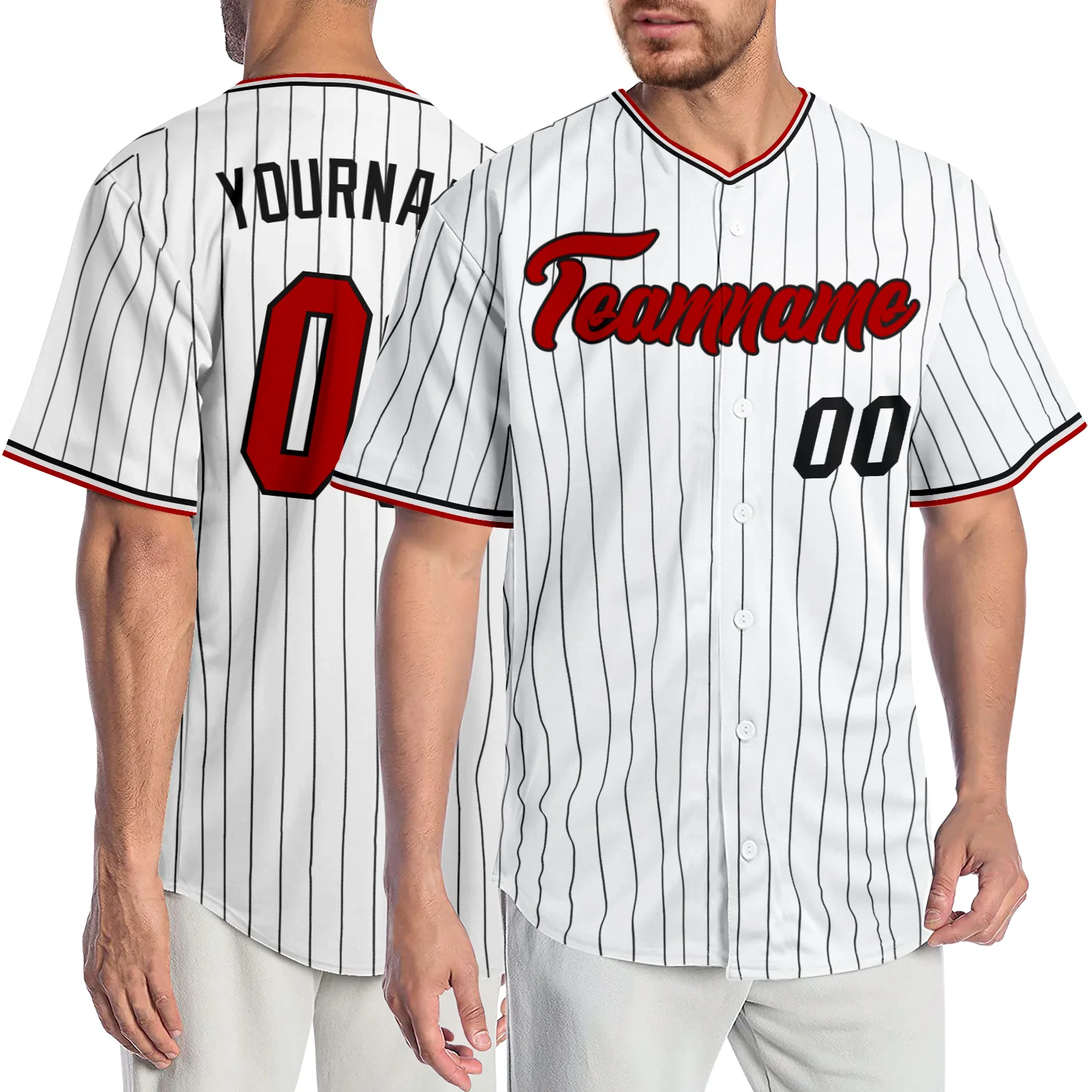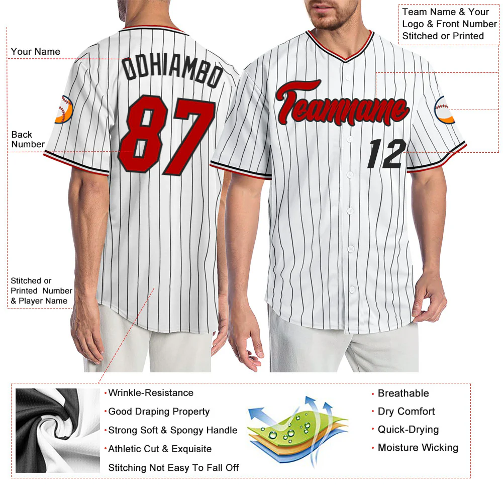 Custom White Black Pinstripe Red-Black Authentic Baseball Jersey