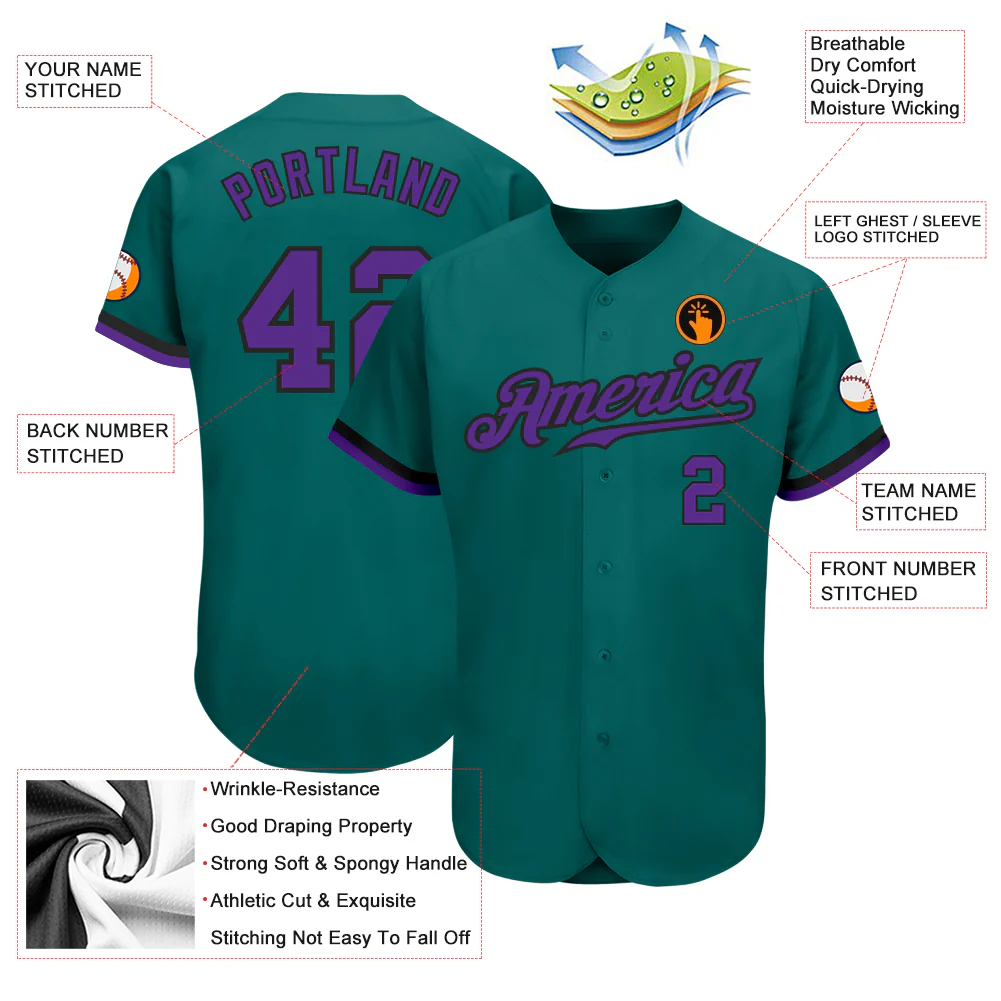 Custom Teal Purple-Black Authentic Baseball Jersey
