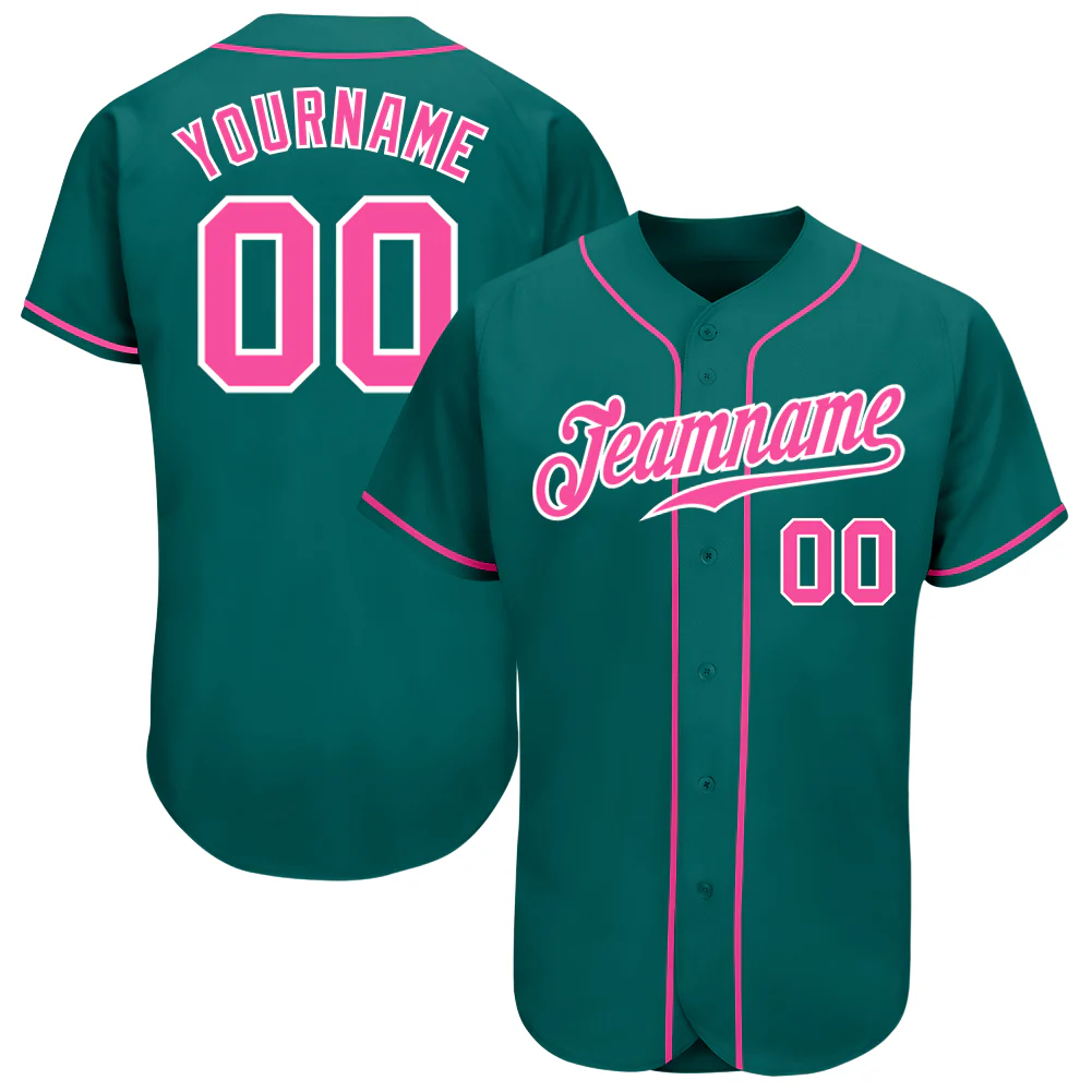 Custom Teal Pink-White Authentic Baseball Jersey