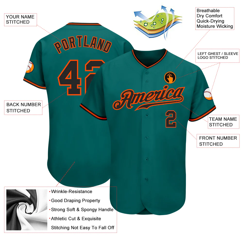 Custom Teal Black-Orange Authentic Baseball Jersey