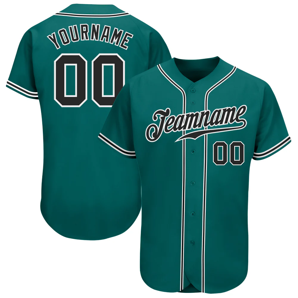 Custom Teal Black-White Authentic Baseball Jersey