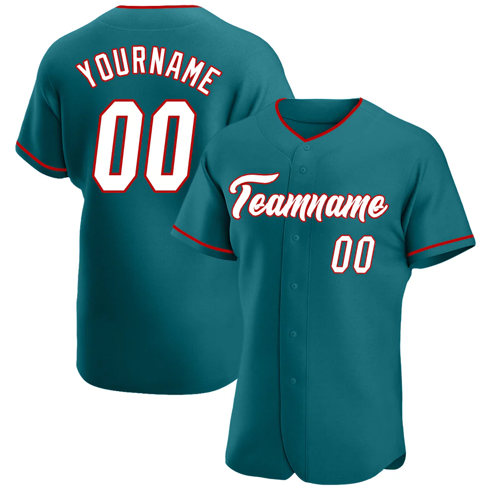 Custom Teal White Pinstripe White-Red Authentic Baseball Jersey