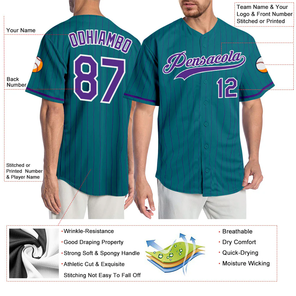 Custom Teal Purple Pinstripe Purple-White Authentic Baseball Jersey