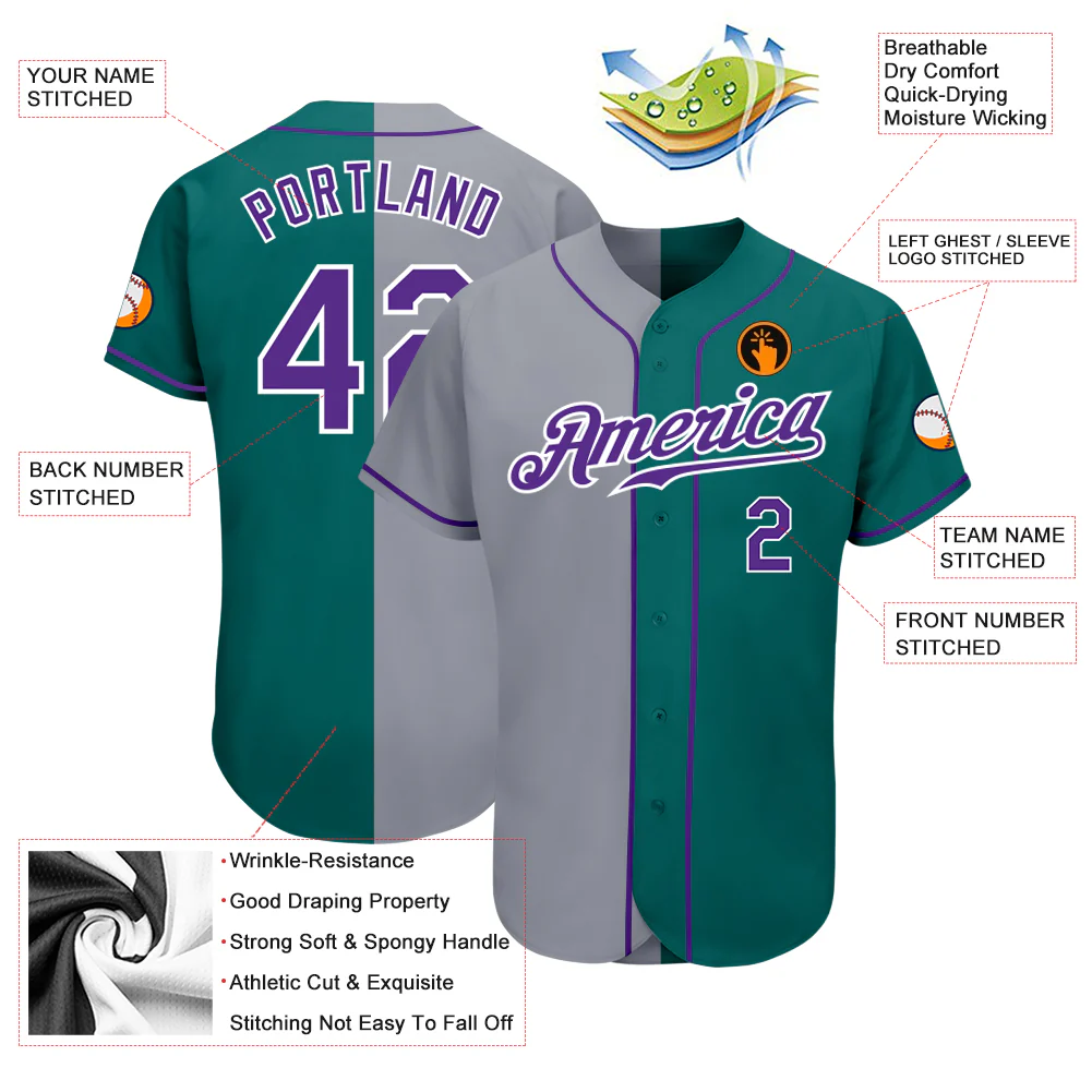 Custom Teal Purple-Gray Authentic Split Fashion Baseball Jersey