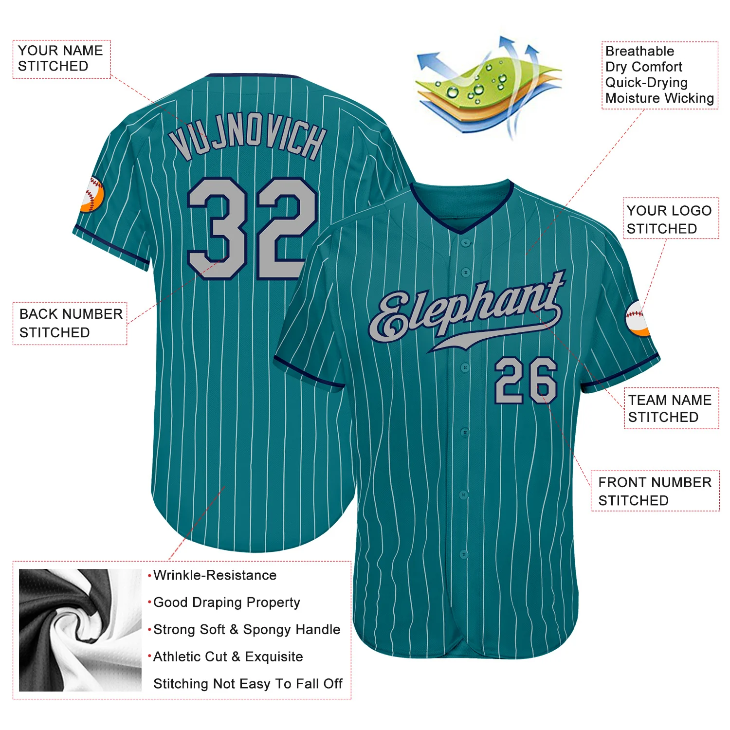 Custom Teal White Pinstripe Gray-Navy Authentic Baseball Jersey