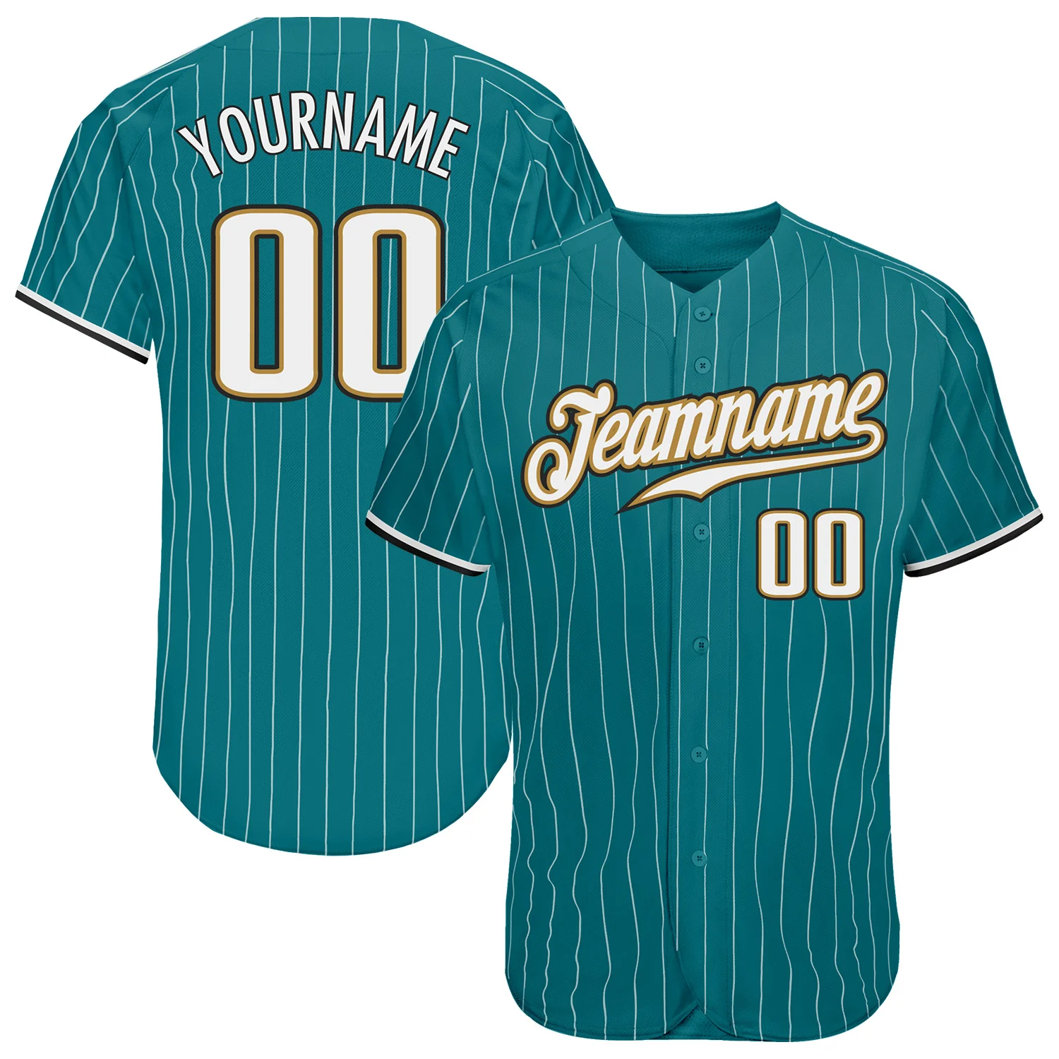 Custom Teal White Pinstripe White-Old Gold Authentic Baseball Jersey