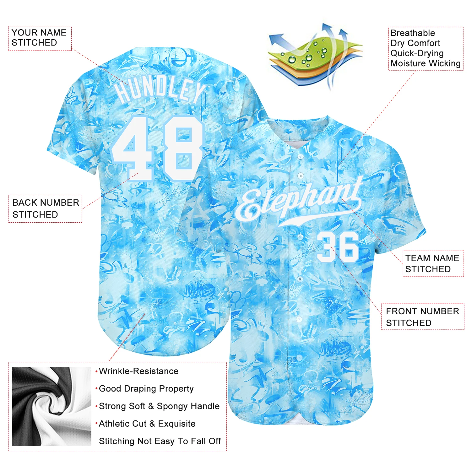 Custom Scratch Graffiti Pattern White-Light Blue 3D Authentic Baseball Jersey