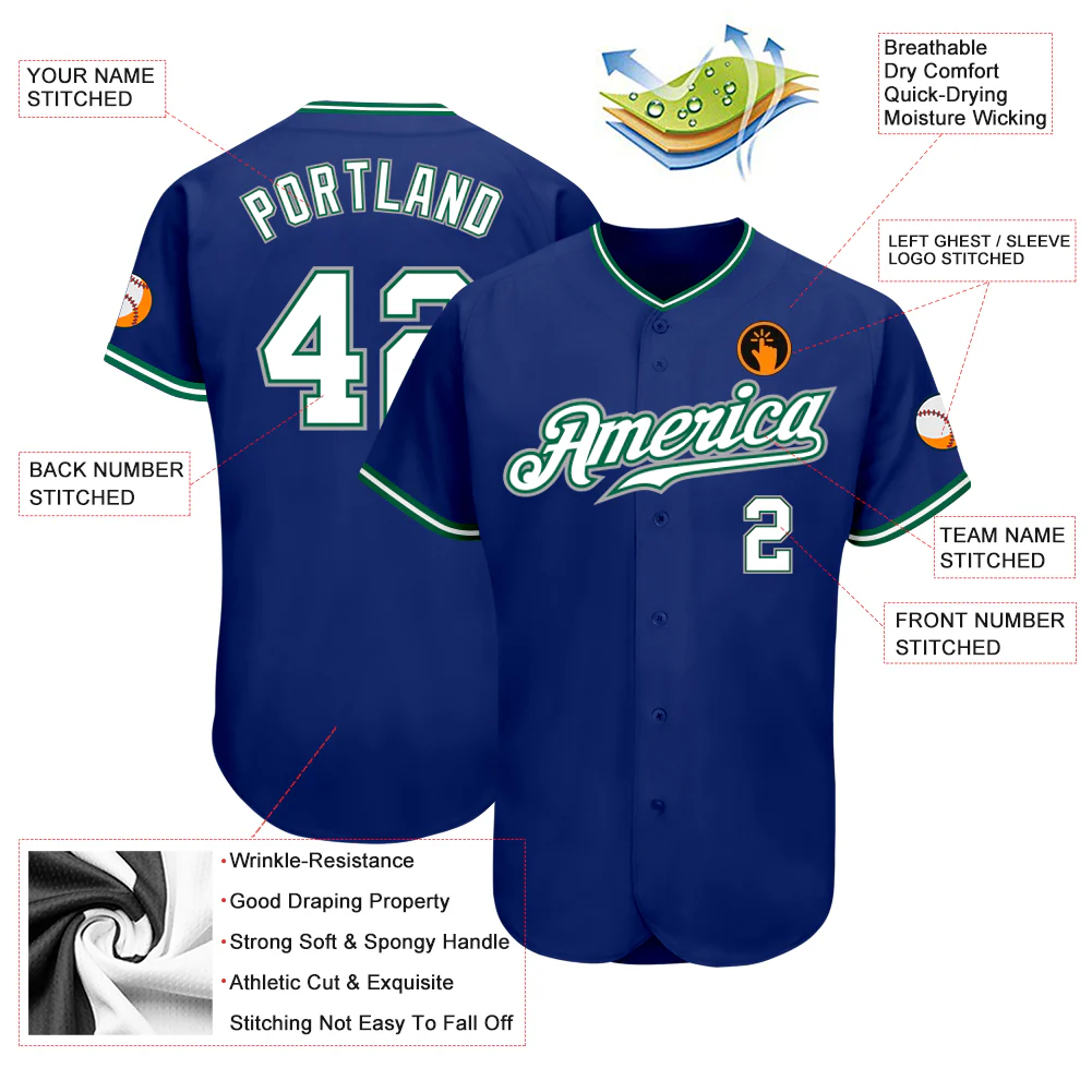 Custom Royal White Kelly Green-Gray Authentic Baseball Jersey