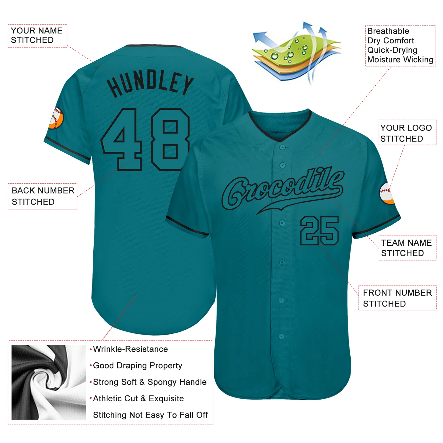 Custom Teal Teal-Black Authentic Baseball Jersey