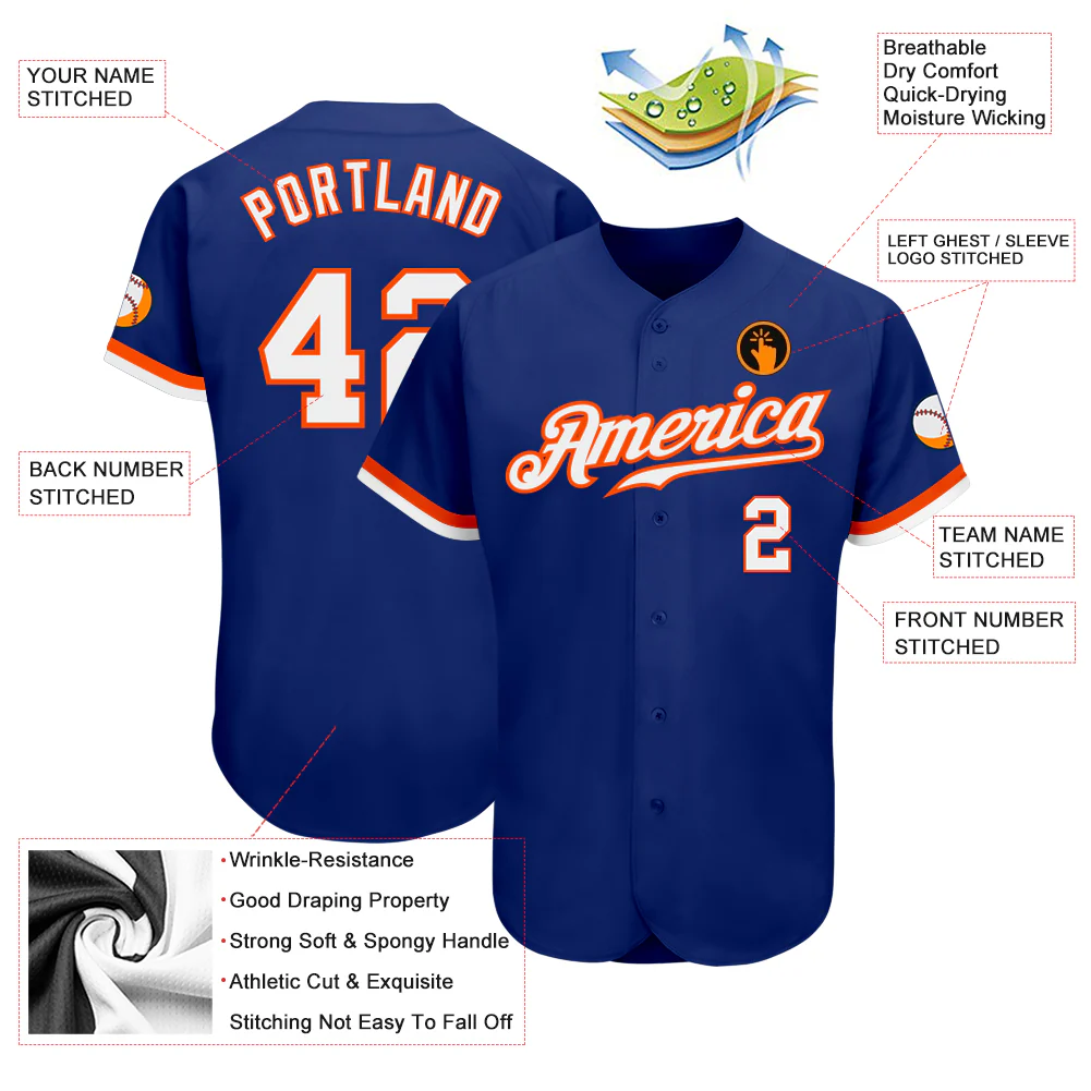 Custom Royal White-Orange Authentic Baseball Jersey