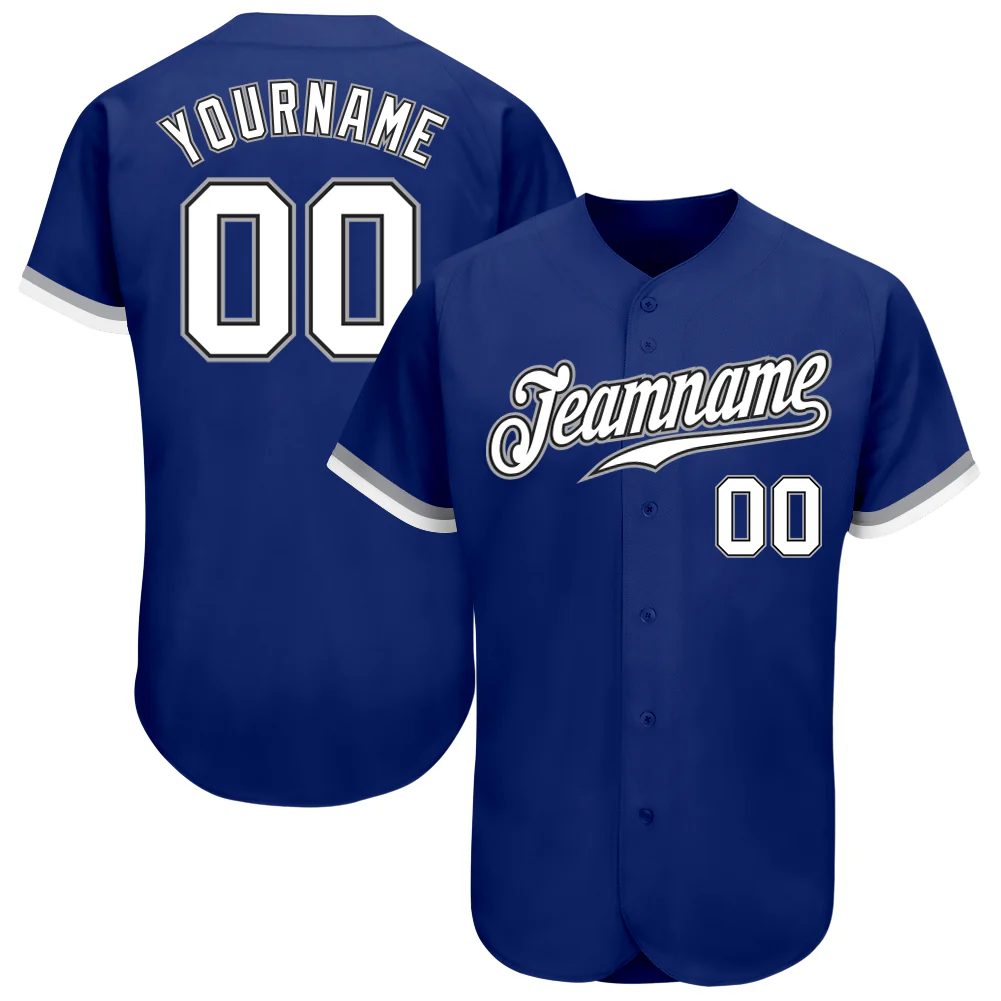 Custom Royal White Black-Gray Authentic Baseball Jersey