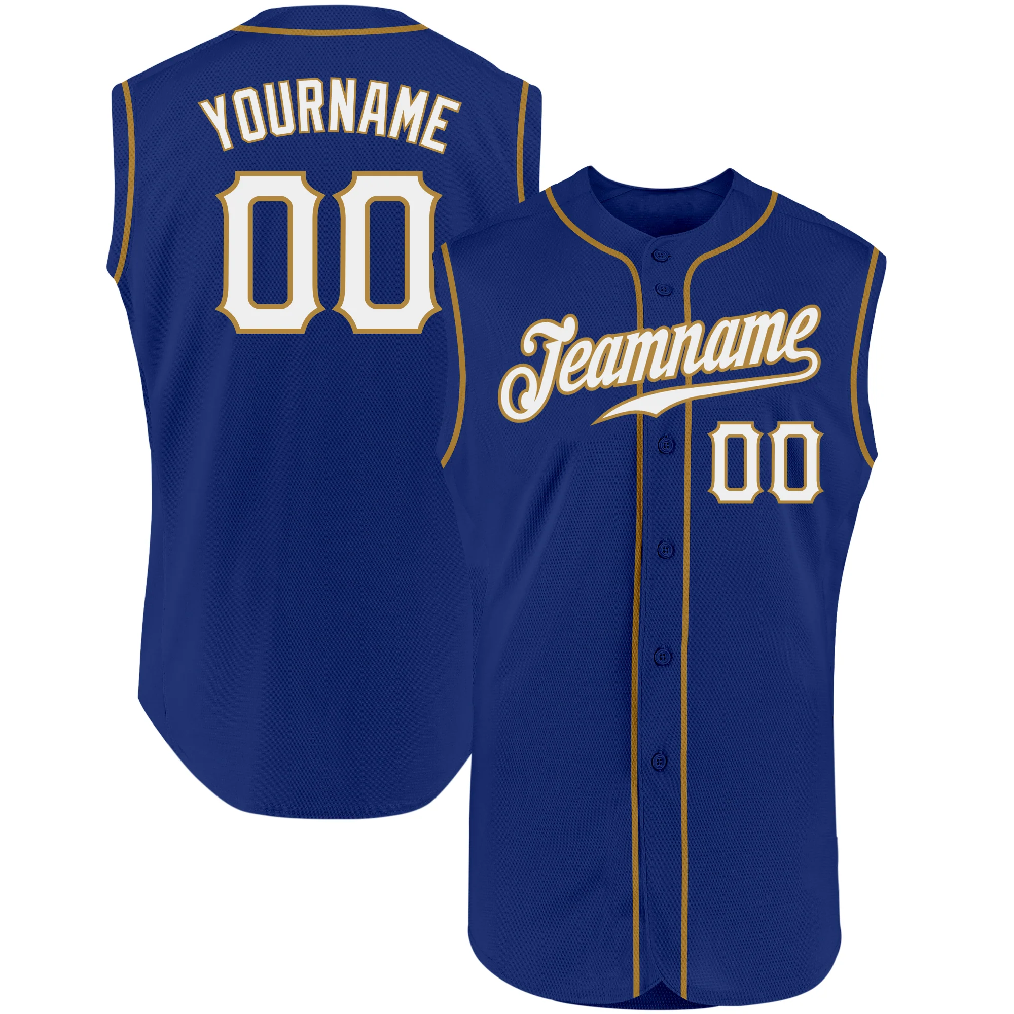 Custom Royal White-Old Gold Authentic Sleeveless Baseball Jersey