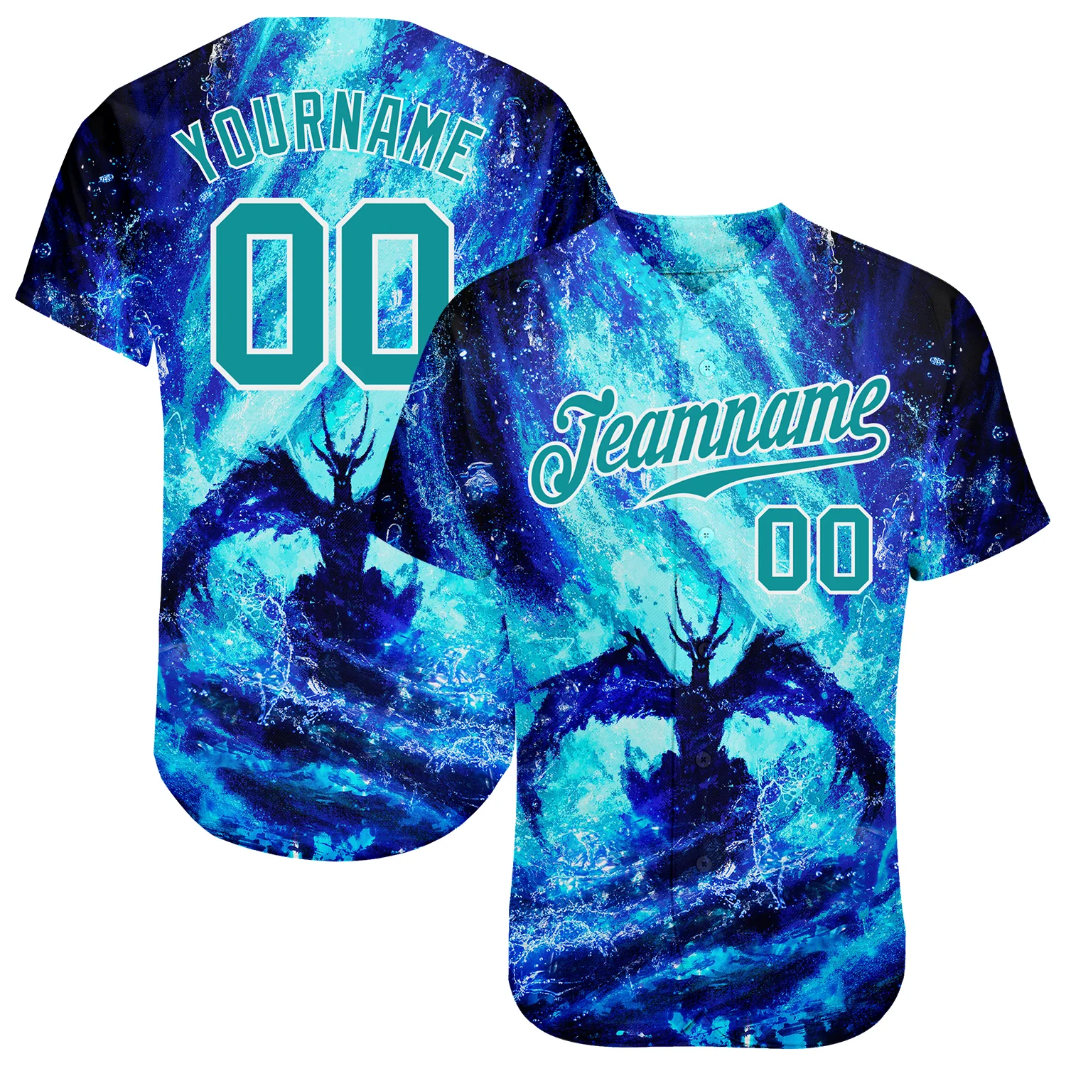 Custom Royal Teal-White 3D Pattern Design Water Dragon Authentic Baseball Jersey
